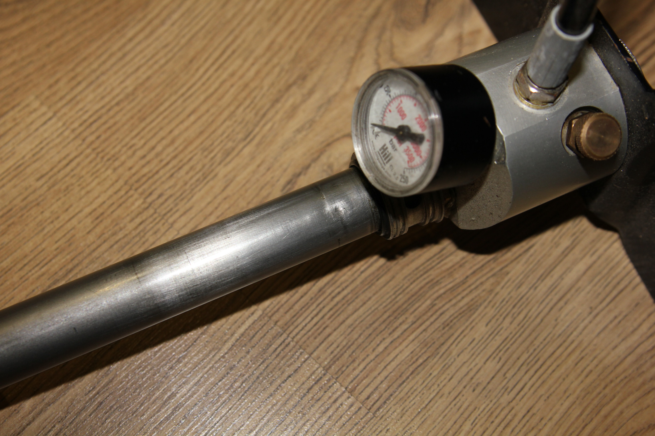 работает качает без проблем есть проблема , прошлый владелец был сильно рукожоп и при разборе помял трубу первой ступени на фото видно.