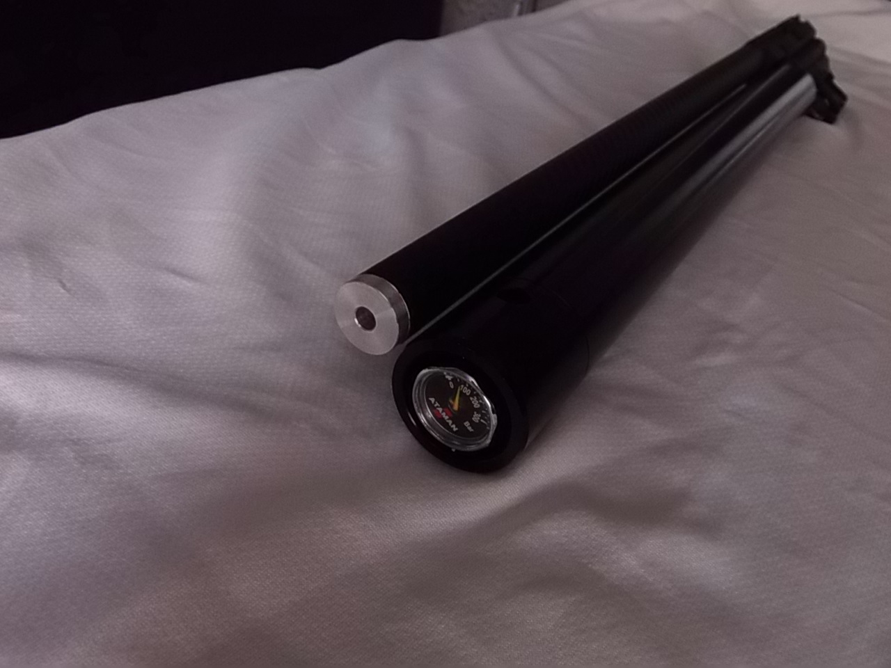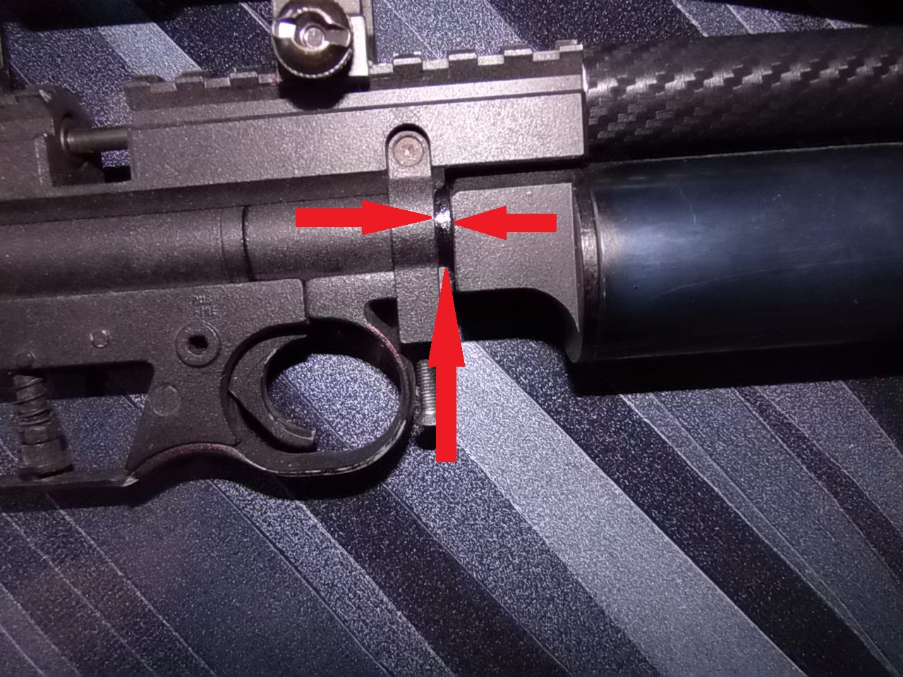 А дотянул до того,что стал пропускать воздух мой недокарабин.Думаю вся причина утечки кроется в этом месте,которое будет обозначено стрелками.Не быстро,но всё же спускает.Что-то влажно там :ne_vi_del: