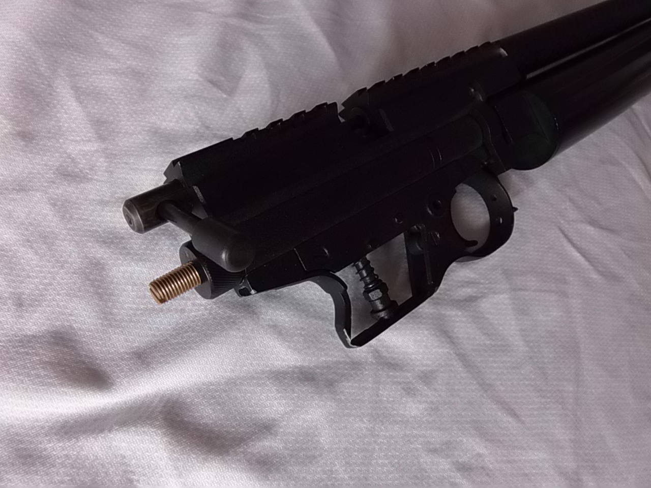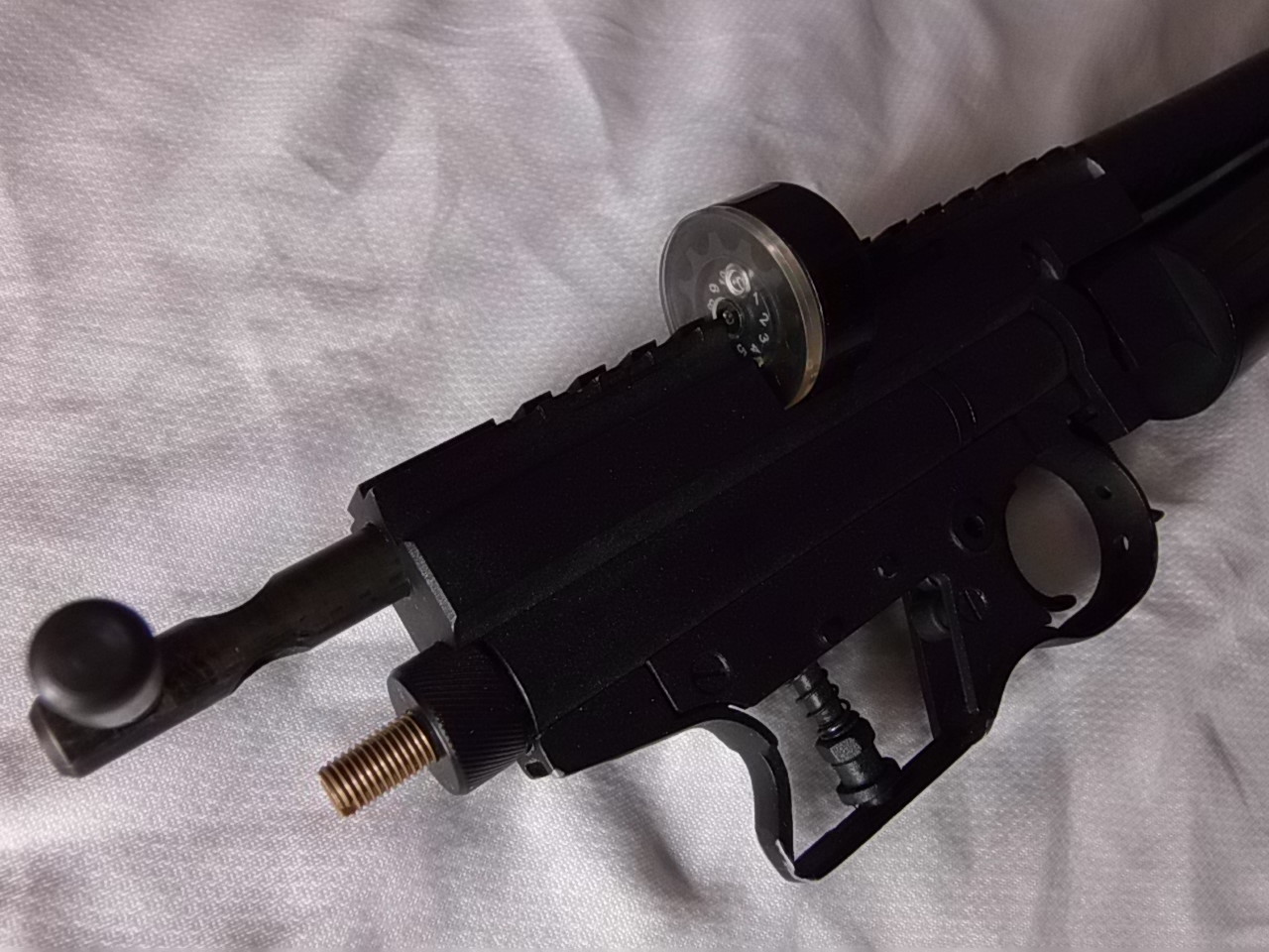 4)Колодка с УСМ стандартная CROSMAN 1377.Рукоять отпилена до перемычки под пружину. Всё работает,функцию свою выполняет.