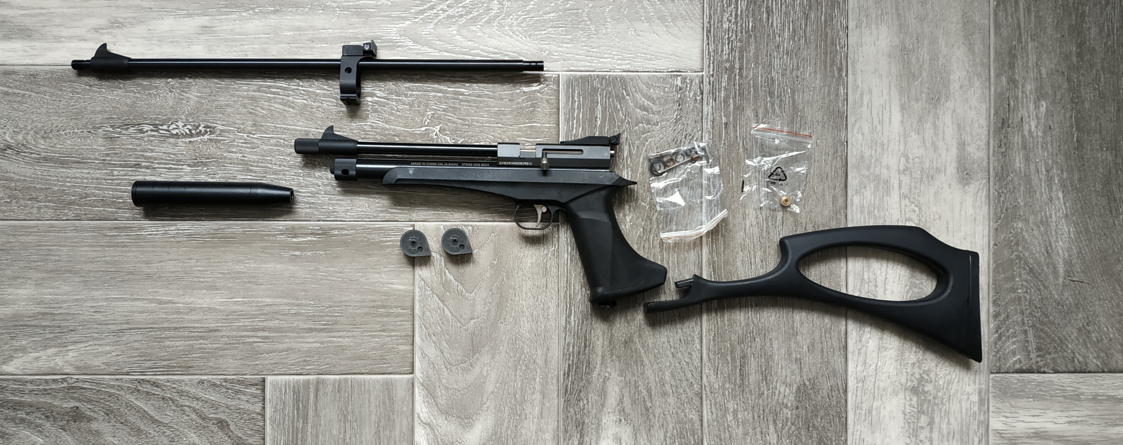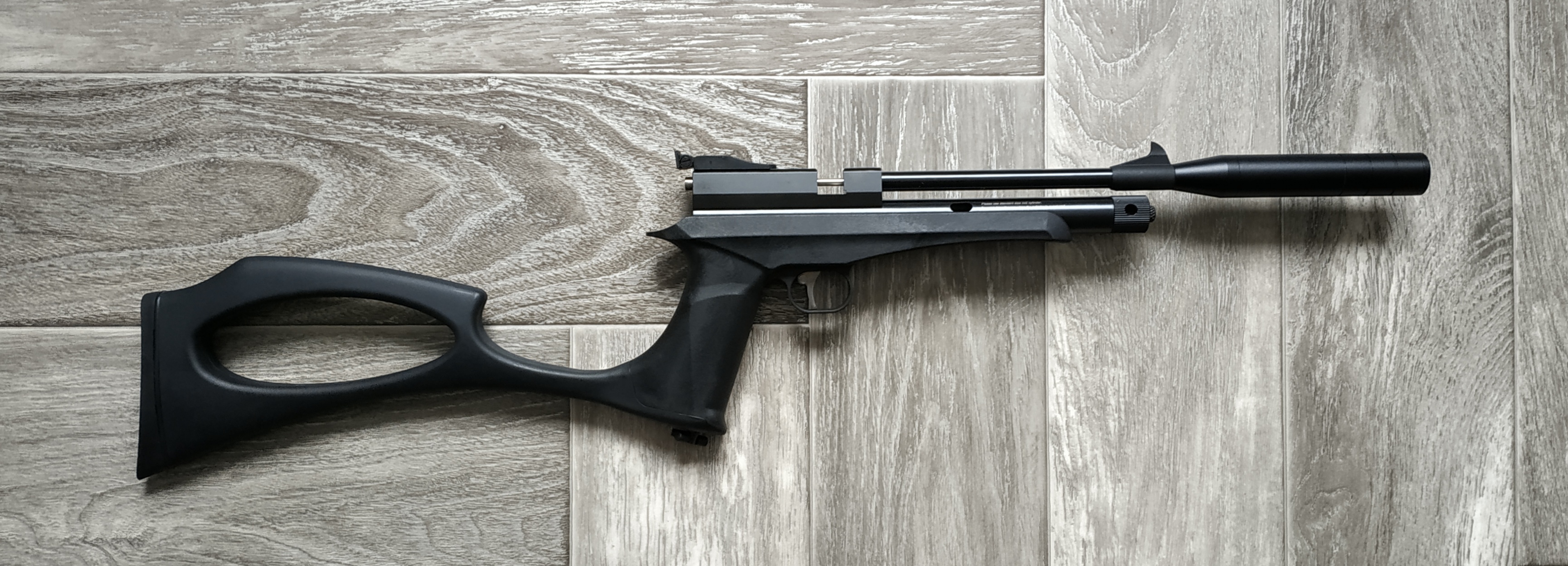 Отличная, очень интересная модель. И пистолет и карабин (съемный приклад), однозарядная или много зарядная стрельба (в комплекте два магазина на 9 пуль). Еще и два стволика в комплекте. Модератор, конических стаканов внутри как в моем рапторе)))). Очень прикладистая.