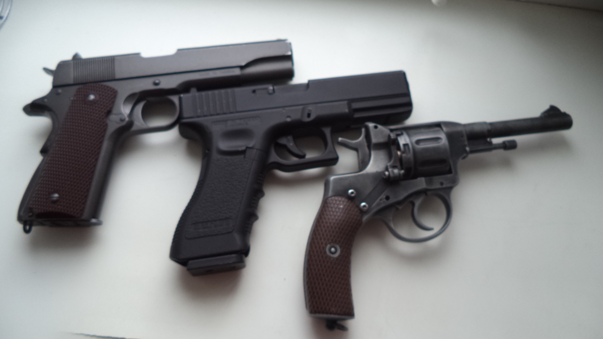 .Все пистолеты в хорошем состоянии. НГТ , по внешнему виду подогнан под боевой ( состарен) . В остальном в стоке. Цена за все 450 рублей. По отдельности КОЛЬТ 170р, КП -18 160р( имеет функцию автомата), НГТ -150 р. СМОРГОНЬ. МТС 80336863322.