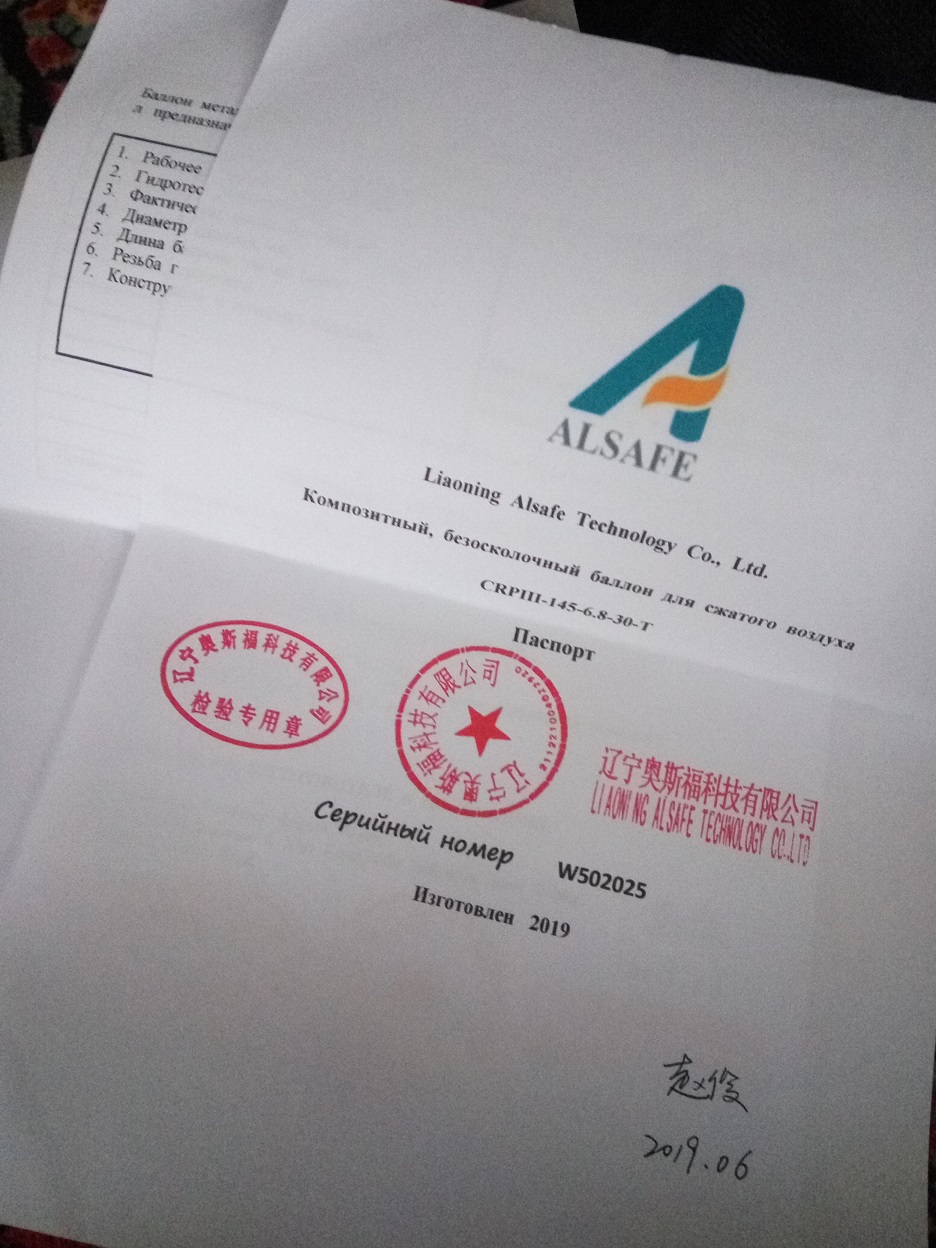 2. Баллон Alsafe. Композит. Новый, 3 заправки. Документы. Чехол. ЗС с манометром.