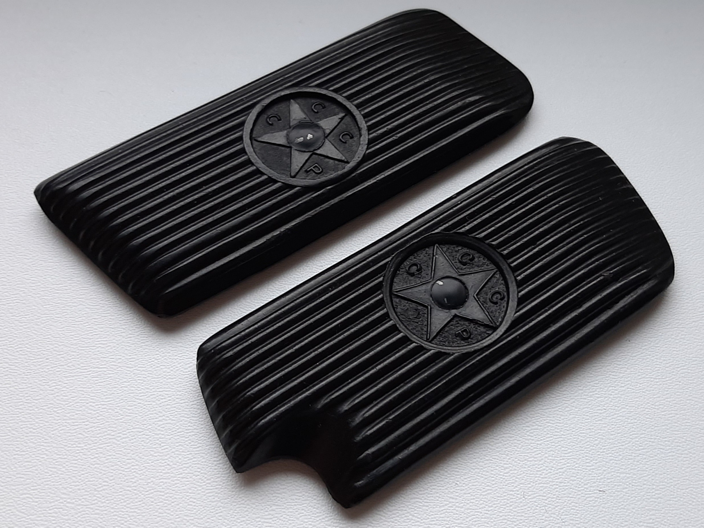 и там отчетливо всё видно. какие доказательства вам нужны, найти мастера-литейщика форм, или сделать запрос на завод изготовитель бакелитовых накладок?