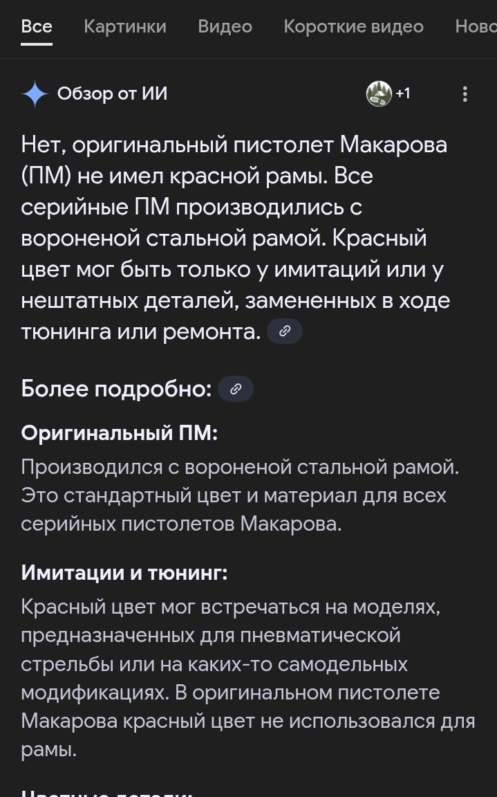 Поэтому нет ничего красивого и оригинального в красном цвете рамы ПМ.[/quote]