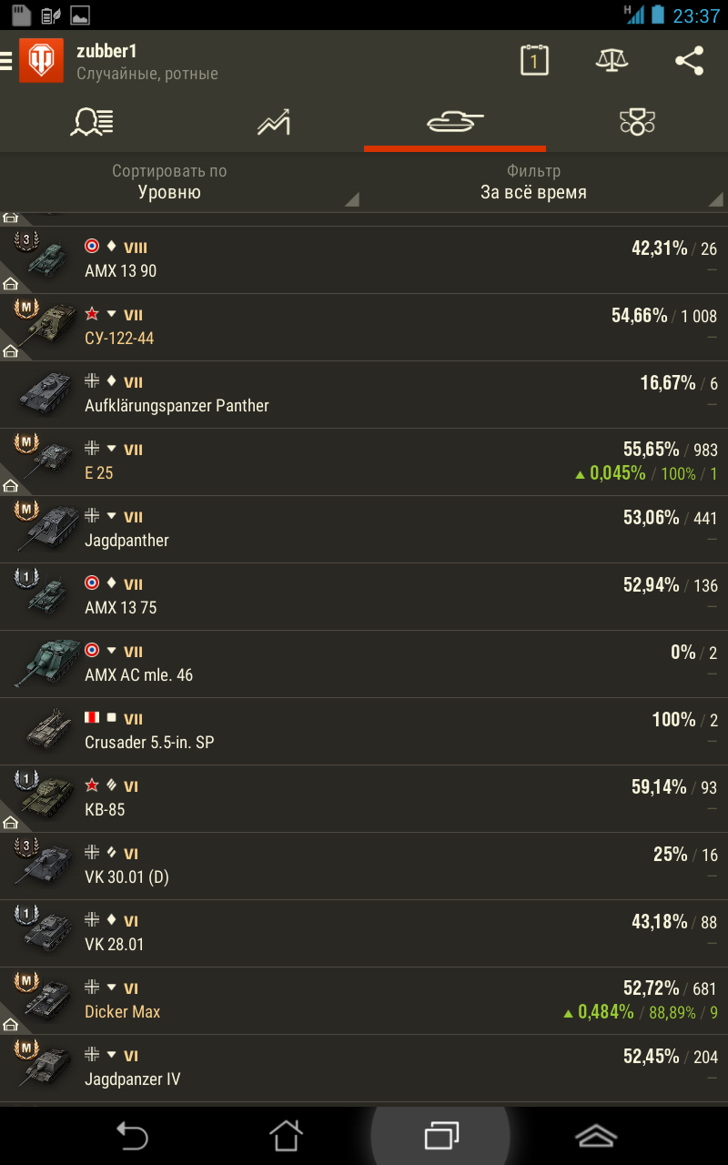VLAD972 писал(а):Вот, ни чем ни примечательный бой. Немного засвета, немного дамага и пару фрагов. За всё это чистыми 52тыщи.