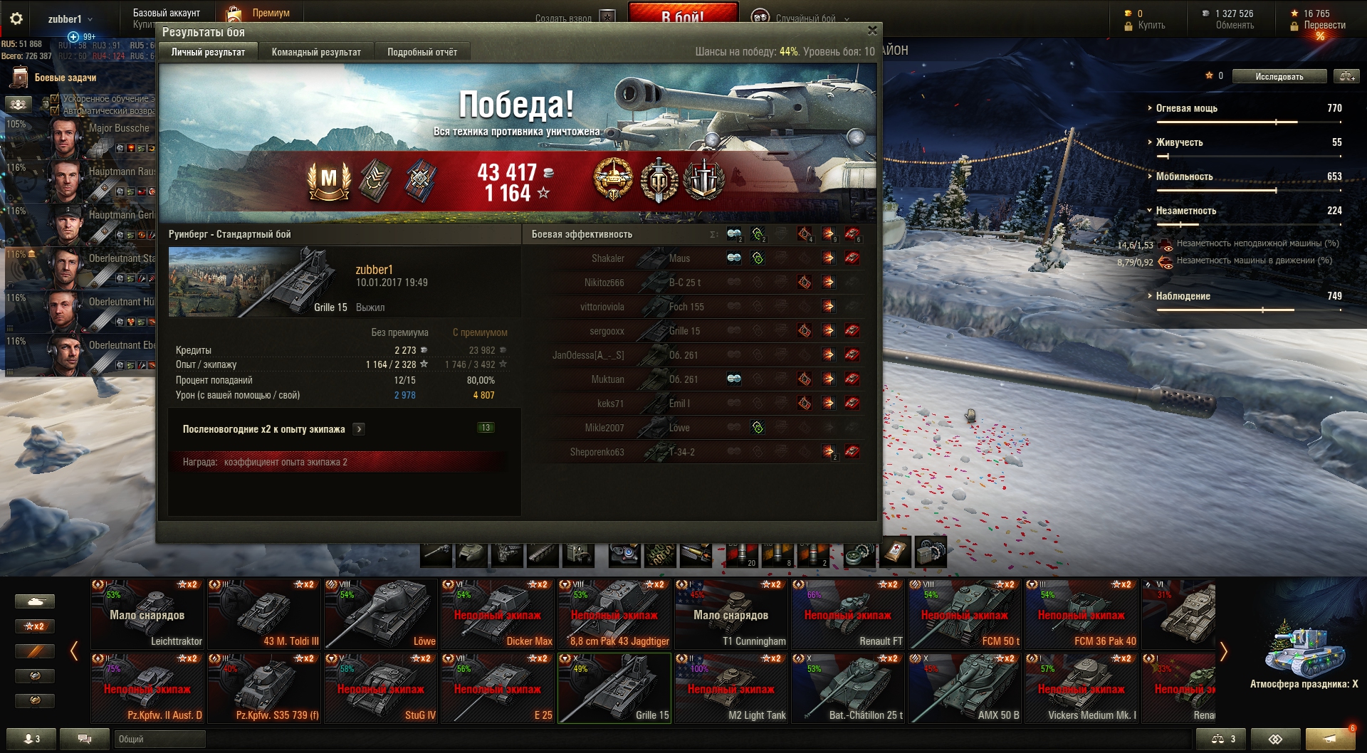 Так что гриль мне пока особо не понравился. На 9-й пт пока качал гриля оказалось 59% побед, на гриле ща телепается около 50%. :cry_ing: