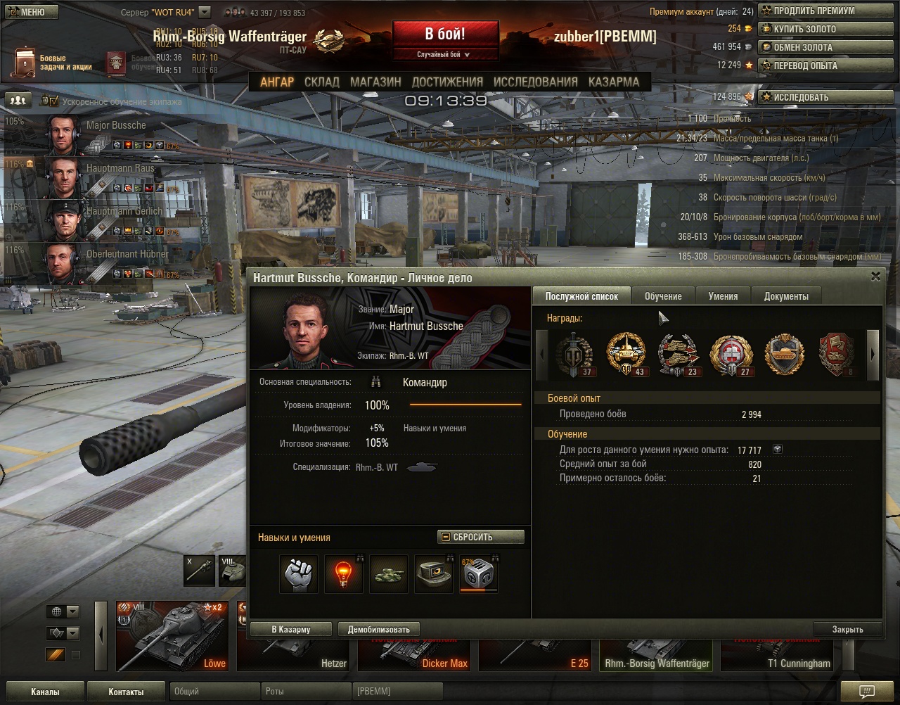 Инструкция конечно хорошо, но есть один маленький момент. "Лампочка", "боевое братство" и некоторые другие "перки" начинают работать только при 100% изучении. А вот к примеру "маскировка" и прочие работают сразу по мере их прокачки. Поэтому вначале качаем командиру "маскировку" или "орлиный глаз" которые действуют сразу, а впоследствии производим ему "сброс" (за 200 голды) и включаем "лампочку" без которой никуда на любом танке. На "борщике" я в принципе особо не руководствовался инструкциями, все как то по собственному опыту расставил. Недавно сбросил и "боевое братство" включил так как "борщик" на топовой пушке ну совсем уж медленно перезаряжается.Там экипаж который еще со "штуг 3" воюет и имеет боев около 3000. Это самый "матерый" состав с 5-ю перками, у "льва" и "Е-25" по 2200 боев и по 4 перка.