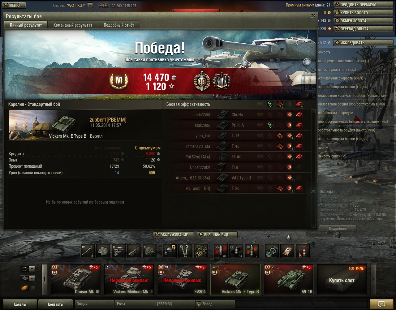 а мне вашу.моя пожалуиста: 55.2% РЭ 1430 и счего сразу 45% изза того что сказал про таипа?его постоянно режут .это и так видно.я на нем катаюсь с перерывами в месяц.так вот каждый раз точность танка падает.раньше на ходу стрелял почти всегда с попаданием.сеичас на ходу прицел как у совков.это с наличием прокаченного экипажа на стрельбу и оборудованием(стаб вент)