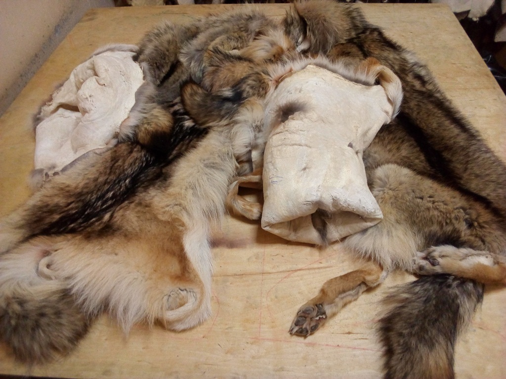 Выделка шкур бобра, лисы, енота, выдры, волка. Все - одежная выделка, пэтому дешево стоить не может. Фотографии можно увидеть здесь -