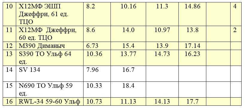 Попробую дополнить таблицу, напишу разницу в усилиях в порядке возростания.