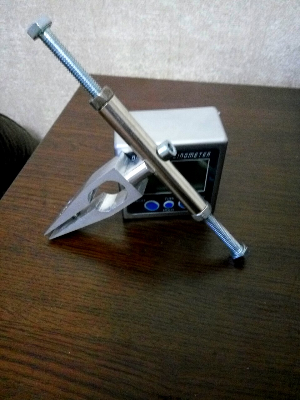 Едем дальше и продолжаем эксперимент. Убрал лишнюю часть втулки и поставил сначала винт с пружиной, но как и предполагал люфт, люфт и еще раз люфт. Ставил пружины разные по жесткости-не помогло. Поставил винт-барашек и вуаля, двух заецев одним выстрелом. Регулировок угла в 2 раза меньше, поворотный принцип соблюден, достаточно лишь приотпустить чутка барашек, много времени не занимает и самое главное люфтов 0, все жестко. На противоположной стороне втулки резьбу оставил, мало ли когда понадобиться сверх малый угол заточки.