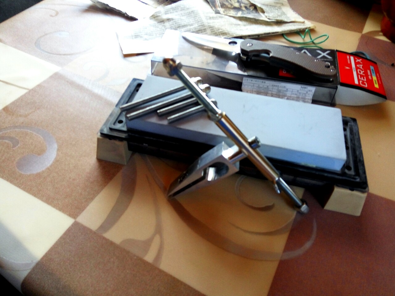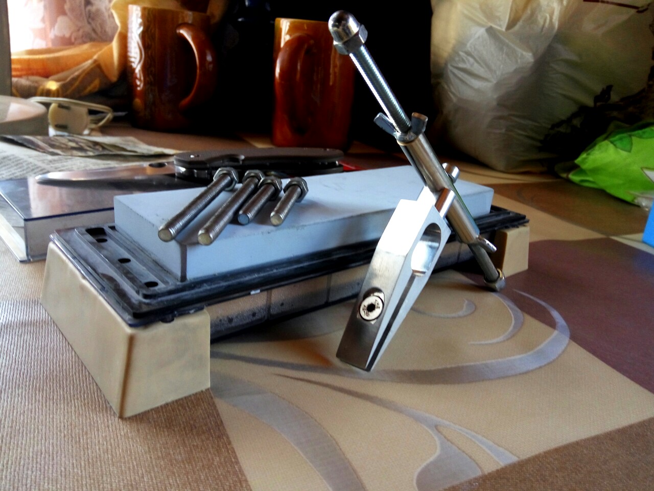 Ну вот подсобрал сегодня приспособу для ручной заточки на фото выше, опробовал на полноразмерных камнях, работает :co_ol: