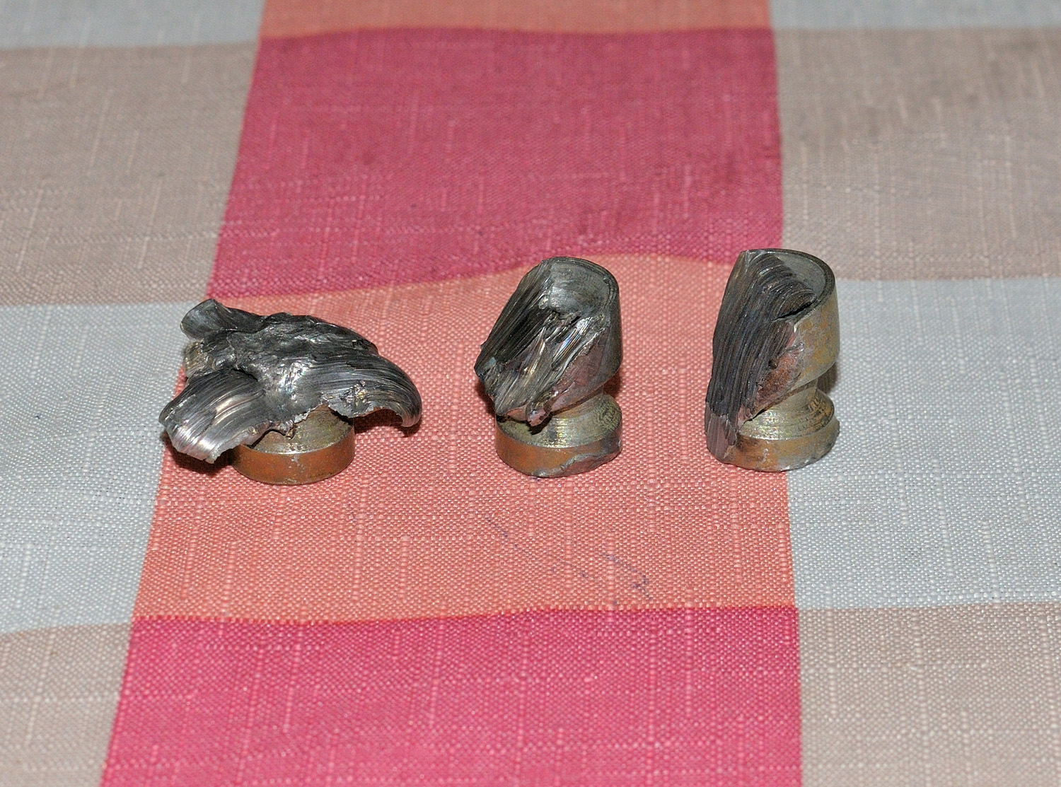 Характер деформации пули при попадании в край броневого листа, установленного под углом в 45 и 60 градусов показывает устойчивость пули к рикошету - видно как пуля...стремится ( не смотря на ТАКУЮ деформацию ) продолжить именно прямолинейное движение.