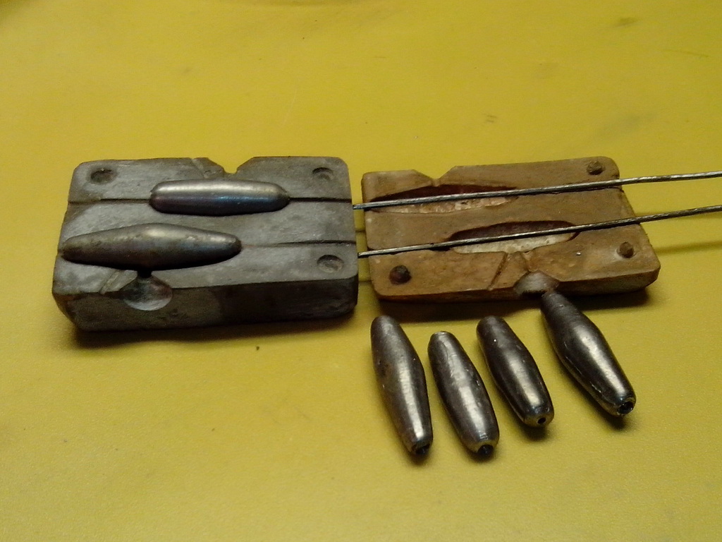Только одна тонкость при её изготовлении немного помешала мне ... Необходимо хорошо высушить форму перед первой заливкой, иначе из-за наличия в ней влаги при заливке грузил форма начинает местами пузыриться и получается не качественное грузило и сама форма портится... :st_ruskiy: