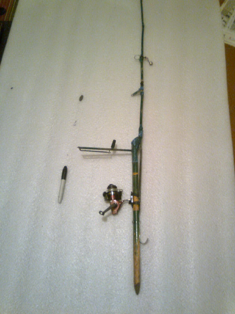 После подсечки леска высвобождается, потом работает пружина и фрикцион катушки, так что пока не выматает леску никуда не денется. Самая маленькая попавшаяся рыбка 10 см. бычок. Удилища из старых бомбуковых удочек, пружины из старых велосипедных сёдел.