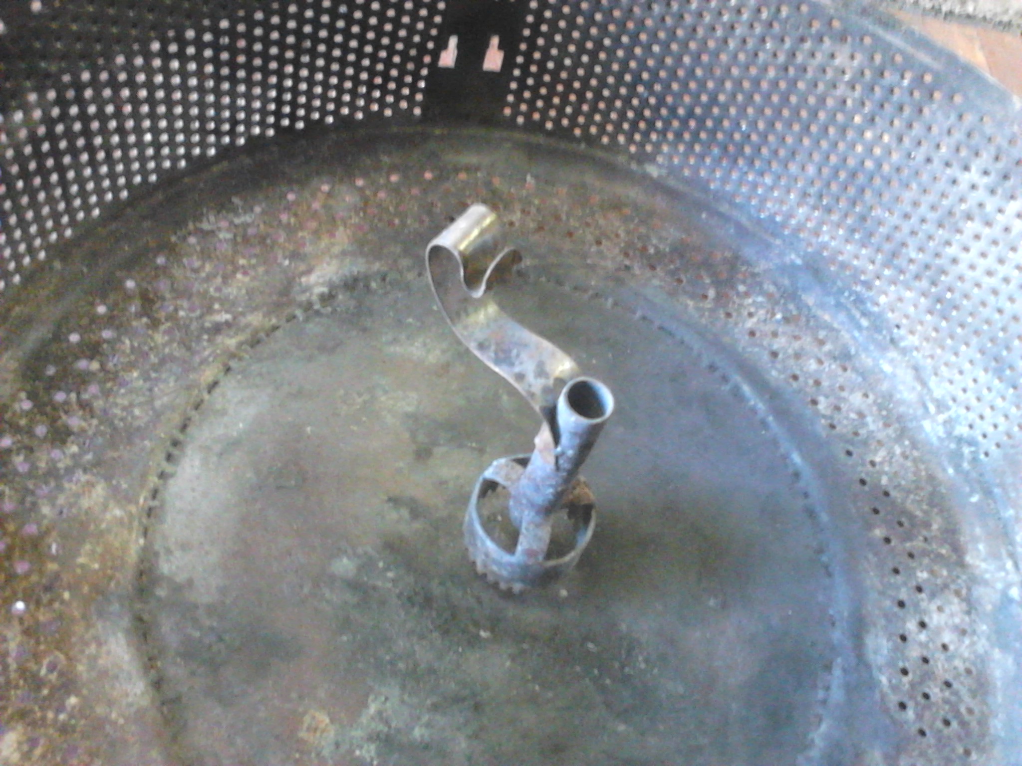 Само "копьё" делал из попавшейся под руку тонкостенной трубки. Из нее же сделана и трубка-вставка крепления на самом мангале, и внутренняя съёмная деталька. Оська приварена через отверстия в трубе, которые заварил заподлицо и зачистил.
