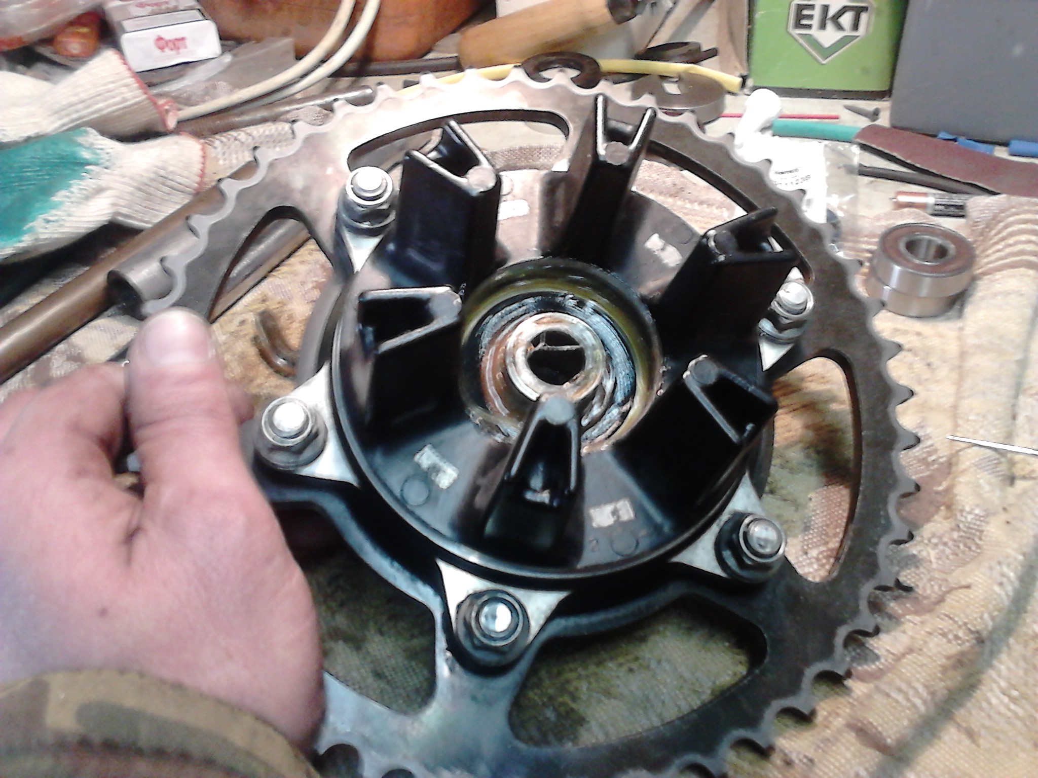 Заменил в результате кроме сальников, все три подшипника с узла крепления заднего колеса, так как вскрытие показало что одному из них за зиму конкретно поплохело, а в остальных давно высохла смазка и вращались воны после промывки как то не совсем идеально, с микро притормозками..... Хорошо ешшо что вовремя влез и не попрокручивались в посадочных гнездах их мать....
