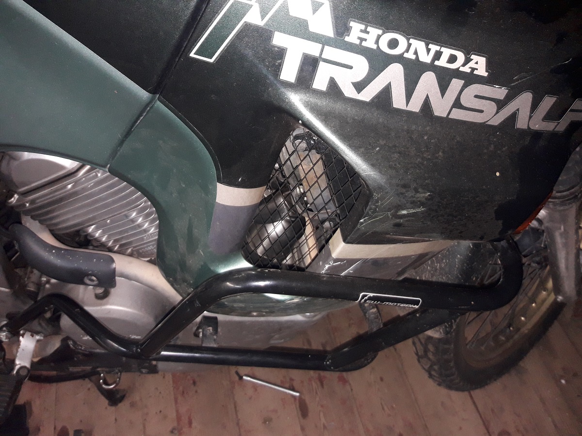 Сначала изготовив крепление встроил под щитки в мотоцикл бутылку из нержавейки на 350 гр., с раскладной воронкой (тоже из нержавейки) на пробке. Для запасного масла движка. Висит и как гриццо "есть не просит". Может когда нить где нить в дебрях и пригодится. Да и так запас всегда под рукой неплохо. :uch_tiv:
