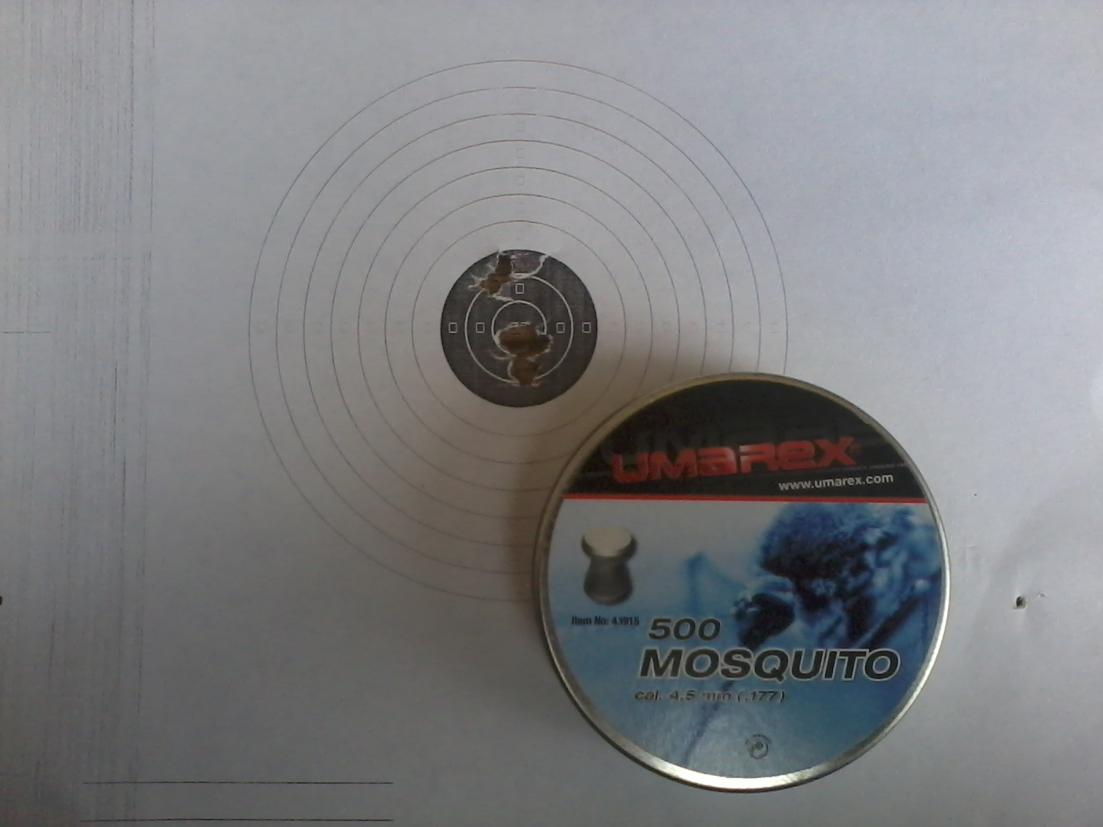 До нормальных пулек ещё не доехал . Эти были для развлечений . Проблема как бы одна , попадаем выше при прицеливании "по книжке" (намушник в центре отверстия диоптра , мушка под "яблоко" с небольшим просветом ) . Чтоб так попасть , как на фото пришлось "залезать" кольцом намушника (верхней частью) на верхнюю часть "яблока" мишени . Постоянно так целится не удобно , трудно рассчитать и удерживать одинаковый просвет между "яблоком" и мушкой . Регулировкой по высоте ничего не добился . Что то делаю не так , а что не пойму . Оказалось для меня сложнее прицелиться с диоптра чем с обычного открытого , хотя должно быть как бы наоборот . Вот и чешу репу . А еще обрадую свою юную стрельчиху весом "игрушки" (оказалась тяжелее старой) и будет полный набор . :-)