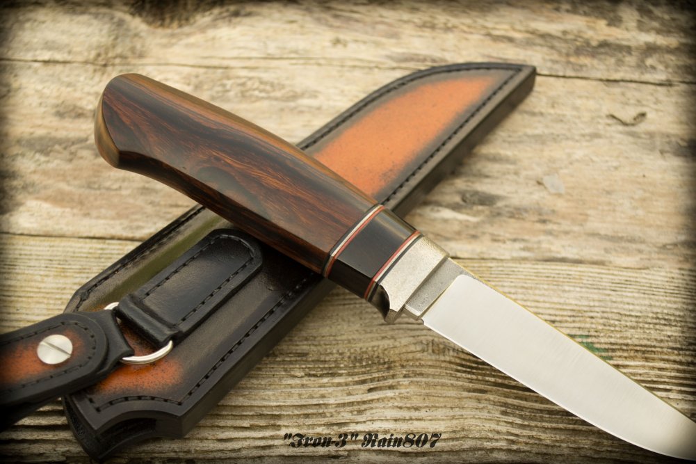 Рукоять: ironwood,вlackwood,фибра,титан.Пропитан данишем.