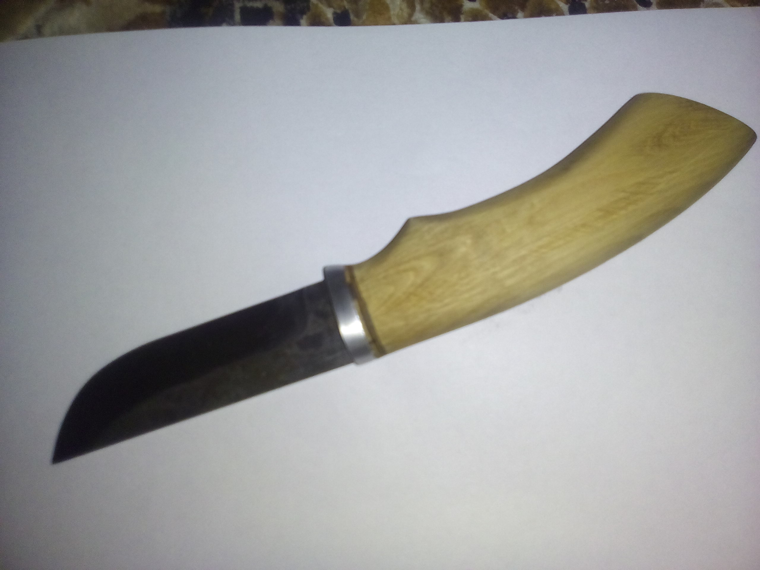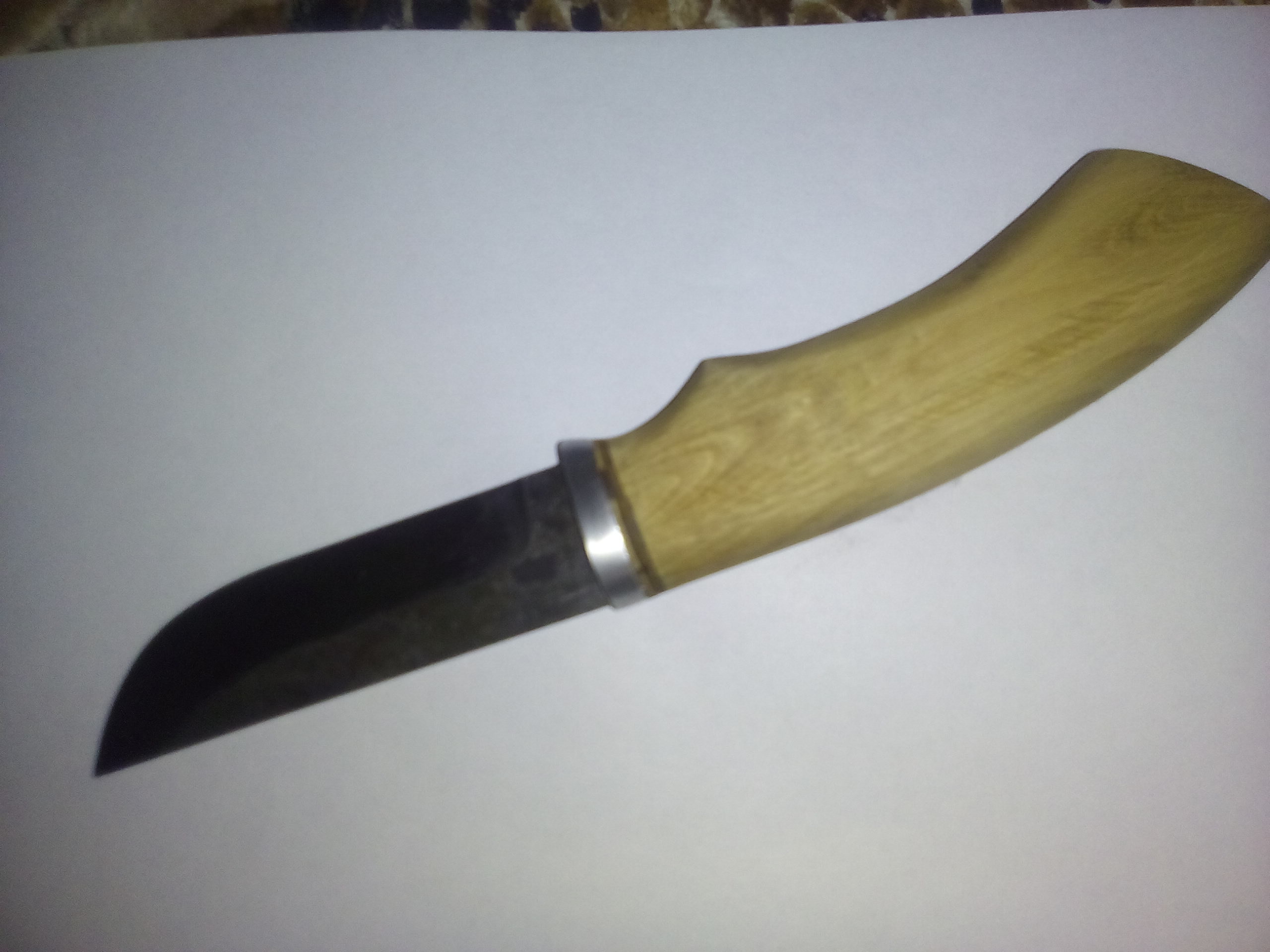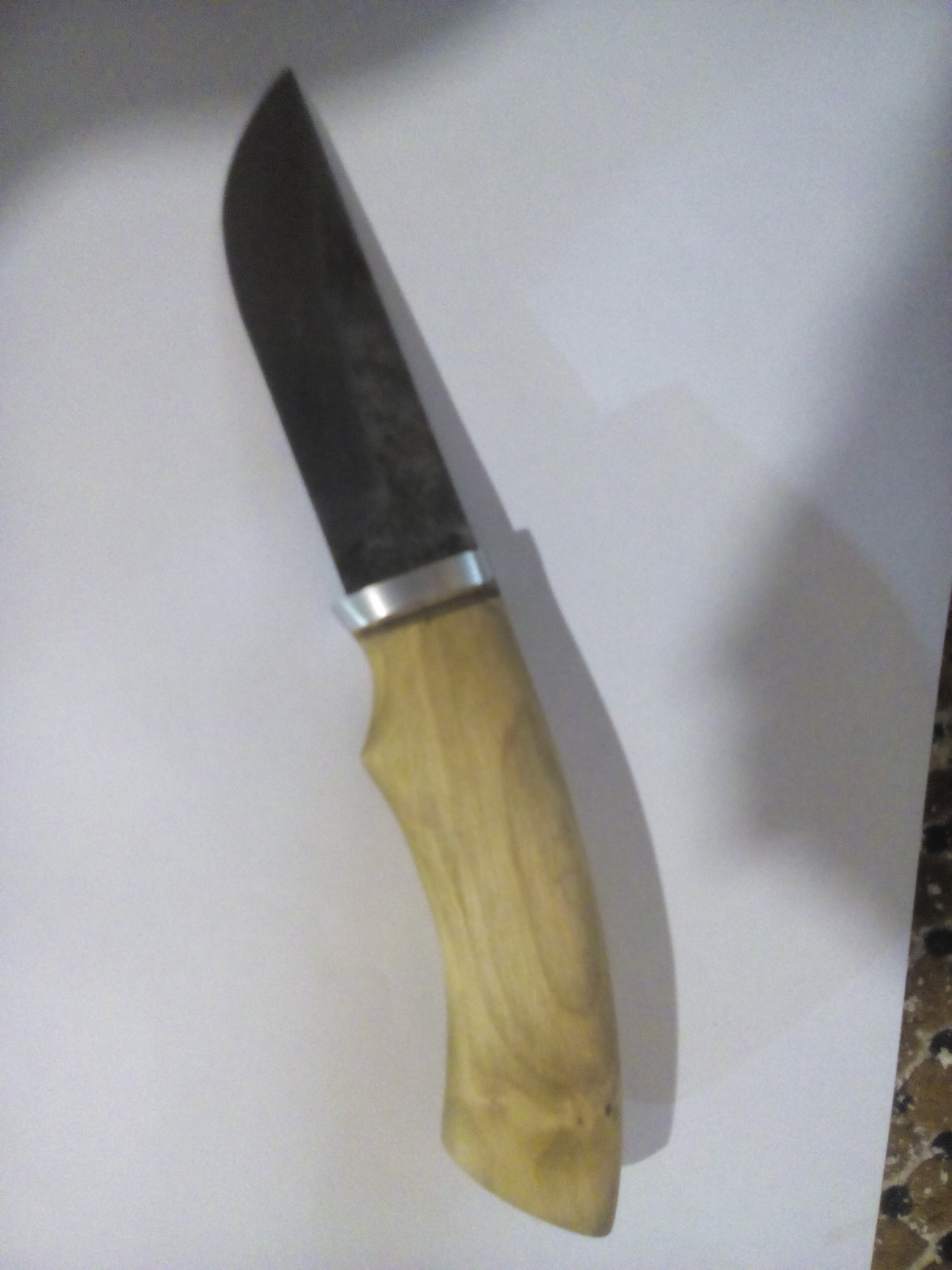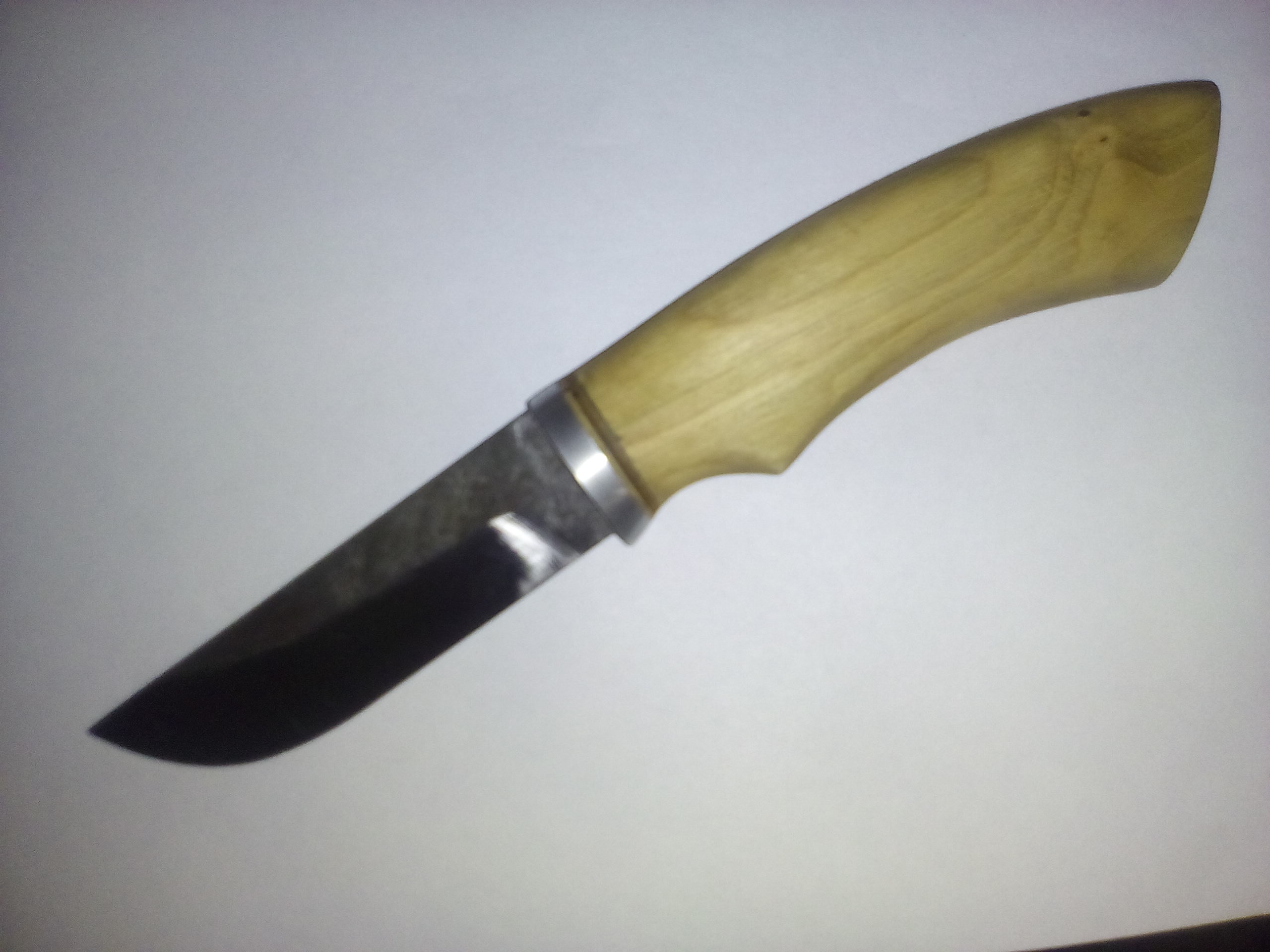 ПРОДАНДимитрий48 писал(а):Второй нож из стали65г(рессора от маза).Клин147х30х4 твёрдость57ед.Рукоять сувель берёзы,ножны хвост быка,подвес конский волос.55р.