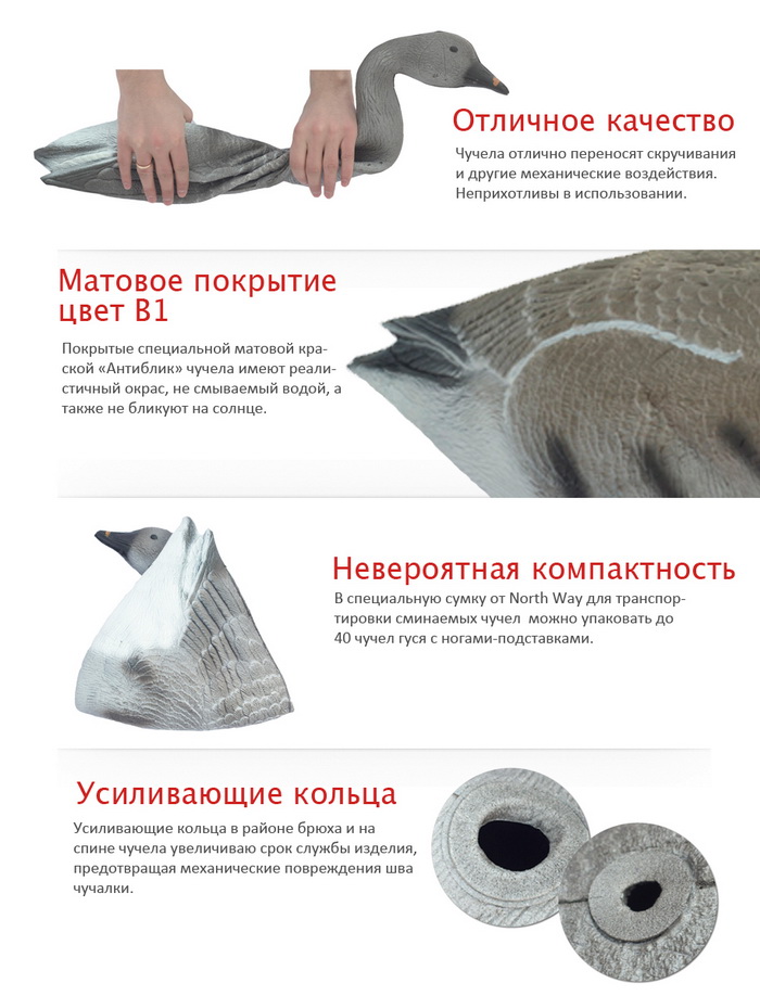 Мы также решили Вас порадовать и объявить распродажу профилей, чучел и флюгеров гусей - которые несомненно станут одним их значимых слагаемых Вашего успеха на гусиной охоте!