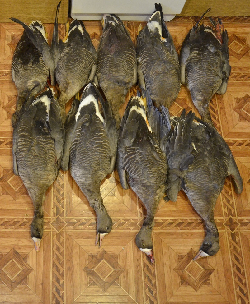 В воскресение добыли 12 белолобых гусей. (фото выложу позже)