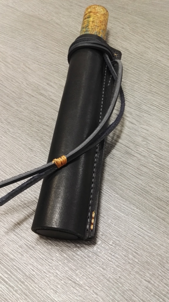 wildkokss писал(а):продам красавца якута, немного характеристик: клинок:автор Бондаренко сталь х12мф 135 мм длина, обух толщина 4мм, зонная закалка,твердость по обуху 54-55HRC ед, по РК 59-60HRC,выпуклая линза, полировка в зеркало, сведение 0,1, рукоятка стабилизированная карелка, бронза,эбонит, фибра, ножны дерево, кожа черная растишка от Мони, черный граб,синяя вощеная нить+синий кожаный шнурок, финиш карнаубский воск, длина ножа 270мм, в ножнах-290мм