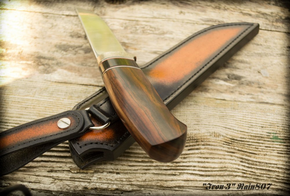 Рукоять: ironwood,вlackwood,фибра,титан.Пропитан данишем.