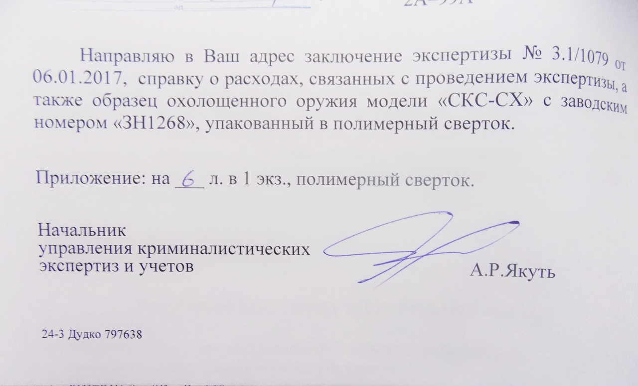 Вы бы это"заключение" выложили здесь для того чтобы вопросов не возникало у потенциальных покупателей.В общем то согласно нашего законодательства этот с позволения сказать "карабин" должен пройти сертификацию в Государственном Комитете судебных экспертиз РБ(если не ошибаюсь-можете поправить) и иметь сертификат...bulbaed писал(а): Данный карабин полностью легален на основании заключения, выданного подразделением судмедэкспертизы.