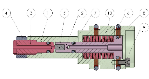 Благодаря округлой форме дюзы, и высокой стойкости к деформации запирающего материала, смещение дюзы после регулировки не приводит к нарушению точности работы или натеканию, и не требуется "перепритирать" запирающее поршня.