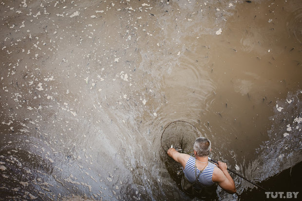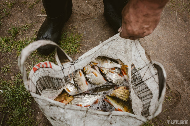 В Пуховичском районе осушают озеро..народ уносит мешки рыбы