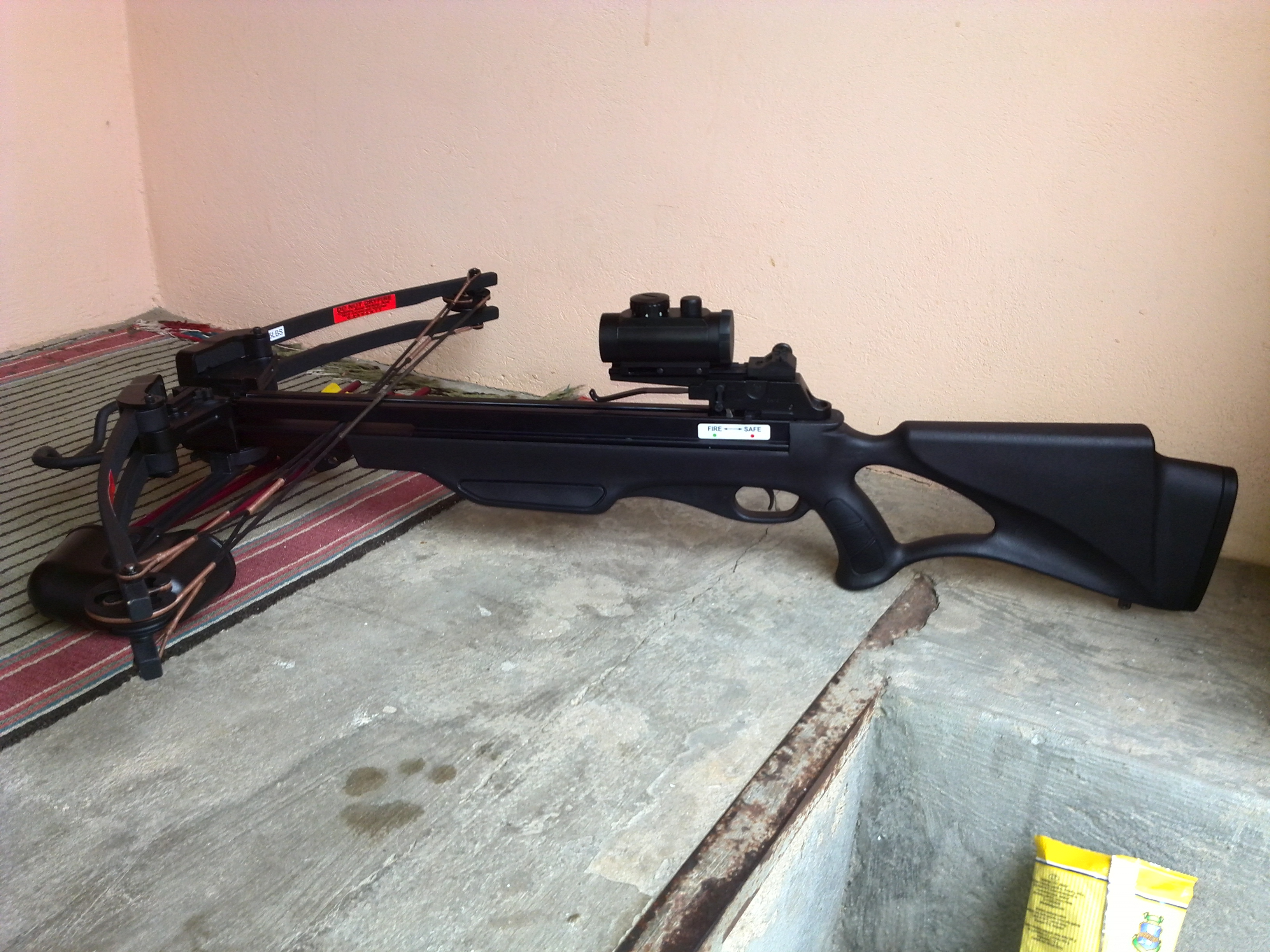 Продам арбалет Черный скарпион рекурсивный, приклад Скелетон. и комплект стрел ( 3) Стрелы алюминевые наконечники титановые. Сила натежения арбалета 42 кг. что стандарт для хранения и мспользования на теретории РФ и РБ без всяких проблем и разрешения. Дальность точного полета стрелы гдето 30-50 метров с каректировкай поправок на целике. Есть потертости незначительные. Цена 300УЕ торг по вапросам в личку. :mi_ga_et: