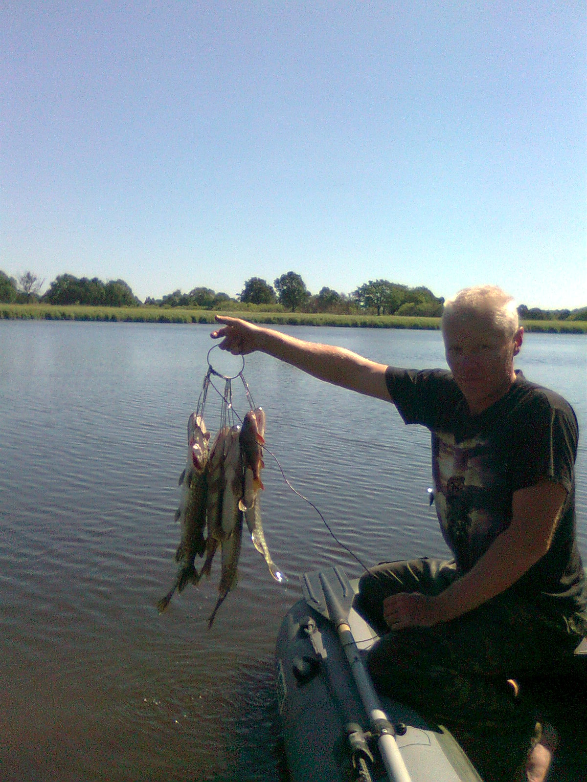 . Уровень воды катастрофически низкий - в самых глубоких местах нет и 1,5м (но рыбка присутсвует). Пятницу и субботу потратил в попытках уговорить местных щук на поклёвку - тщетно ( за два дня лишь 3 полосатика )