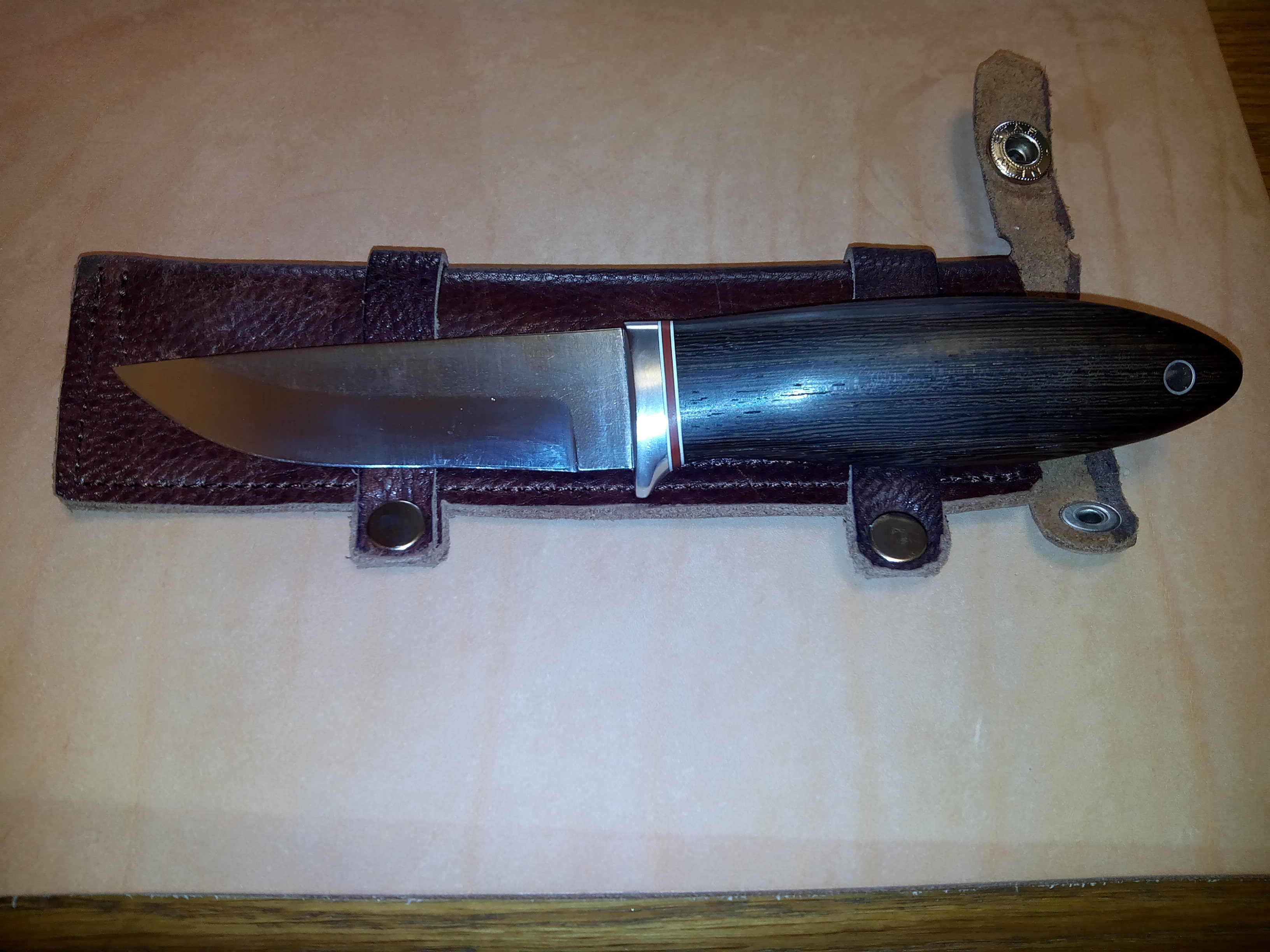 VLAD972 писал(а):Я тут для товарища небольшой экземплярчик соорудил. Быстро забрали, не успел хоть чуть-чуть лучше сфотографировать. Клиночек около 100мм длиной, рукоять венге. Остальное по простому больстер, карточки, пластик, эпоксидка.
