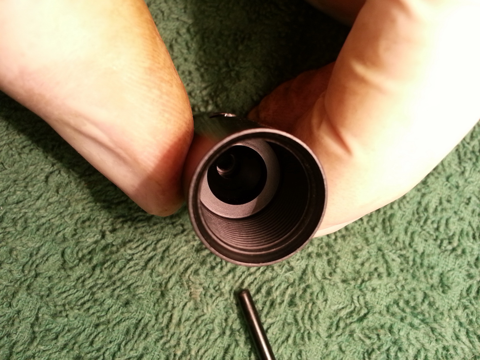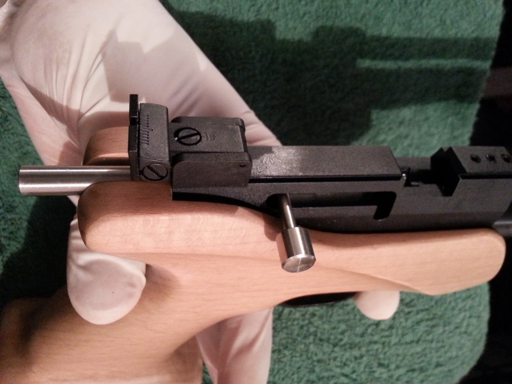 Предварительно нужно открутить болтик, за который цепляется досылатель. Досылатель достается так-же - выкрутить болтик-зацеп и ручку взвода. Она на герметике сидит, но откручивается от руки.