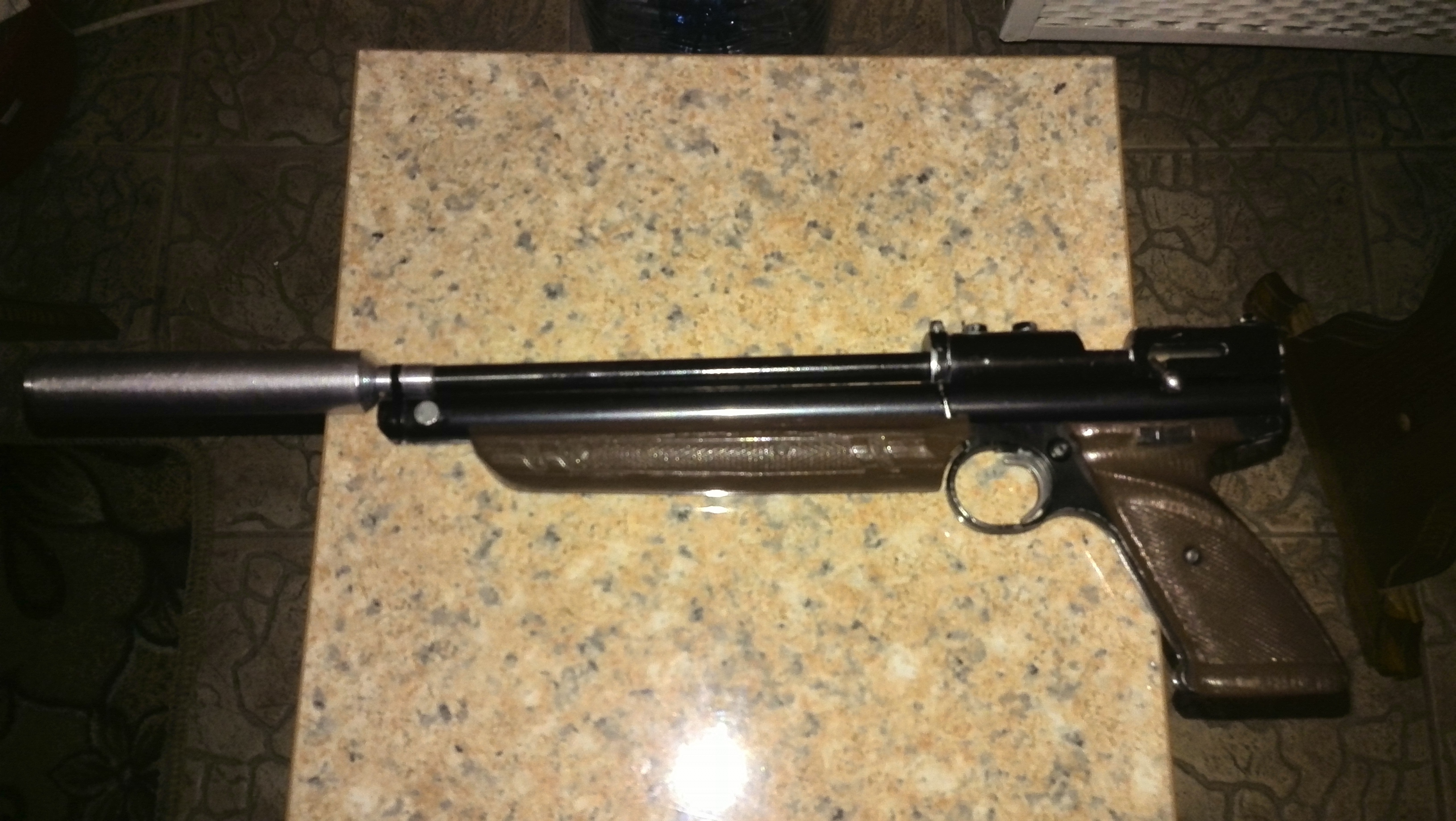 2.КРОСМАН 1377-металлическая ствольная коробка,рег.поршень фторопласт,доработан накопитель,модератор. Цена 150$.