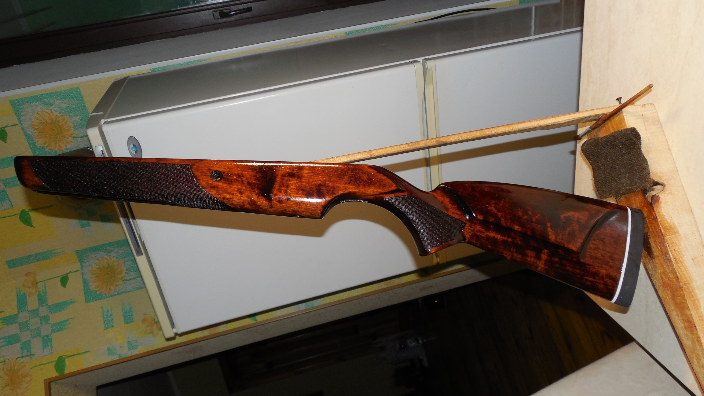 Сам ранее пользовался составами на основе скипидара/воска/бензина для zippo/прополиса на финиш и льнянкой на старт, сохнет слишком долго.. Данишьоил тоже пока не распробовал... Не забываем, что дерево после такой обработки темнеет!
