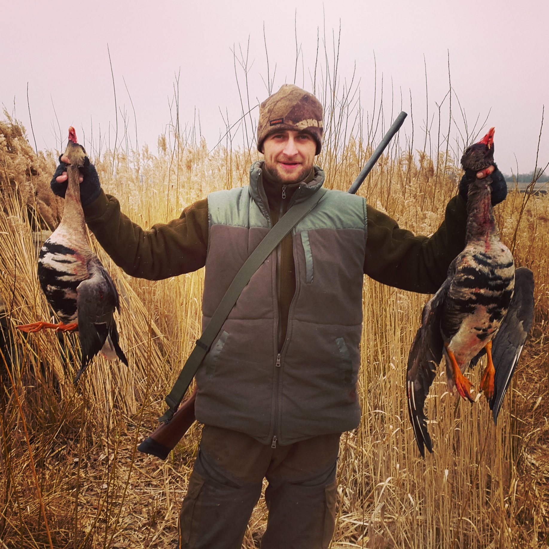 Будильники заведены на три утра, но все как по команде поднялись за несколько минут раньше назначенного срока в эйфории встречи с долгожданным Гусем. Лёгкий перекус и в путь. Приехав на место засады и расставив наших союзников, а именно итальянцев из батальона Спортпласт и китайчат из дивизии Норд вей мы собрались у скрадка в предвкушении боя. Закурив по сигаретке и коротая время в ожидании начала рассвета, мы подверглись неожиданному налёту малой разведывательной авиации генерала Кряковского. Скажу честно, такого количества утки на таком пространстве я не встречал. По самым скромным прикидкам их носилось над нашими головами не менее пятиста особей, притом различных пород. Летали они как и парами, так и звеньями, и даже эскадрильями. Не выдавая себя выстрелами по малым воздушным целям ( мы же не браконьеры ), мы заняли места в скрадке и принялись ожидать подлёта главных сил противника. Рассвет... И вот оно... Долгожданное глык-глык!!! Начинаем работать манками и подманиваем стаю голов 25 на расстояние выстрела... Метров 25-30, команда " ОГОНЬ ", и раздаётся залп, нет, скорее очередь из наших огневых средств... Из стаи выпадает один и утягивает на " нейтралку ". Объявив друг другу по выговору за некачественную стрельбу и услышав каждый о себе много нового, отправляю своего боевого друга Фореста Нэевича Курцхаарова (боевой позывной Риччи) за сбитым вражеским лётчиком. Проявив хитрость и смекалку, мой боевой товарищ Форест Нэевич взял в плен и принёс его живым, за что ему тут же приказом по скрадку было присвоено высокое звание Героя Гусинного Поля и вручена награда в виде вкусного бутерброда! Вражеский лётчик был водворён в тюрьму (рюкзак) и в последствии успешно мною перевербован: дал согласие в дальнейшем работать на нас и жить в мире в одном сарае с курами.