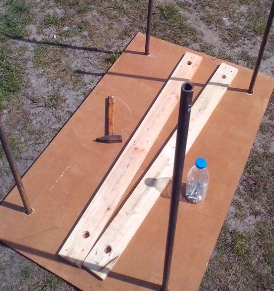 ножки сделал не из арматуры, а из труб металлических, диаметром 20 мм...