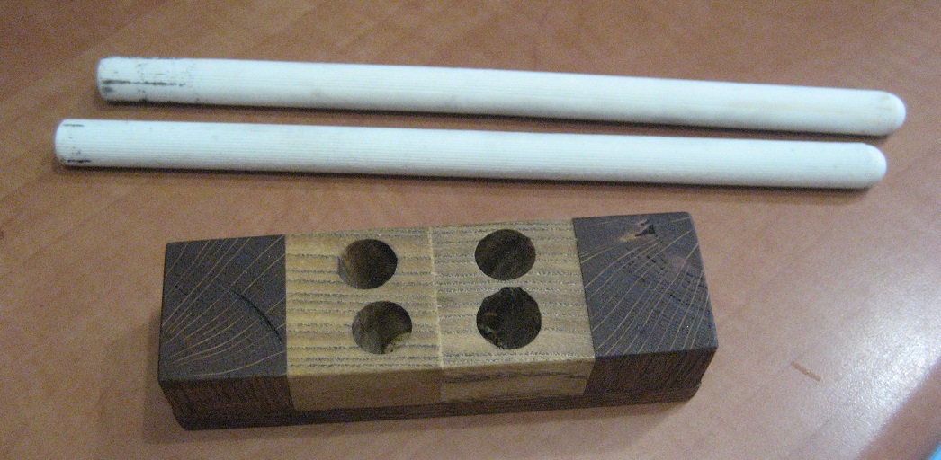 Заказа с Али два одинаковых керамических мусата (двухсторонние - для грубой, и более тонкой подводки), выпилил основание с пазами в 35* и 45* (для поварского и топорика). Для периодической подправки - хватает за глаза.