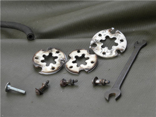 0,6 кило и Jonsered - сорвало сразу сварку с верхней обоимы, ремонт на болт М4 и 5 км на полном скаку в двоем, пока не раздербанило и болт и сварку со шпилькой на верхней шестерне.