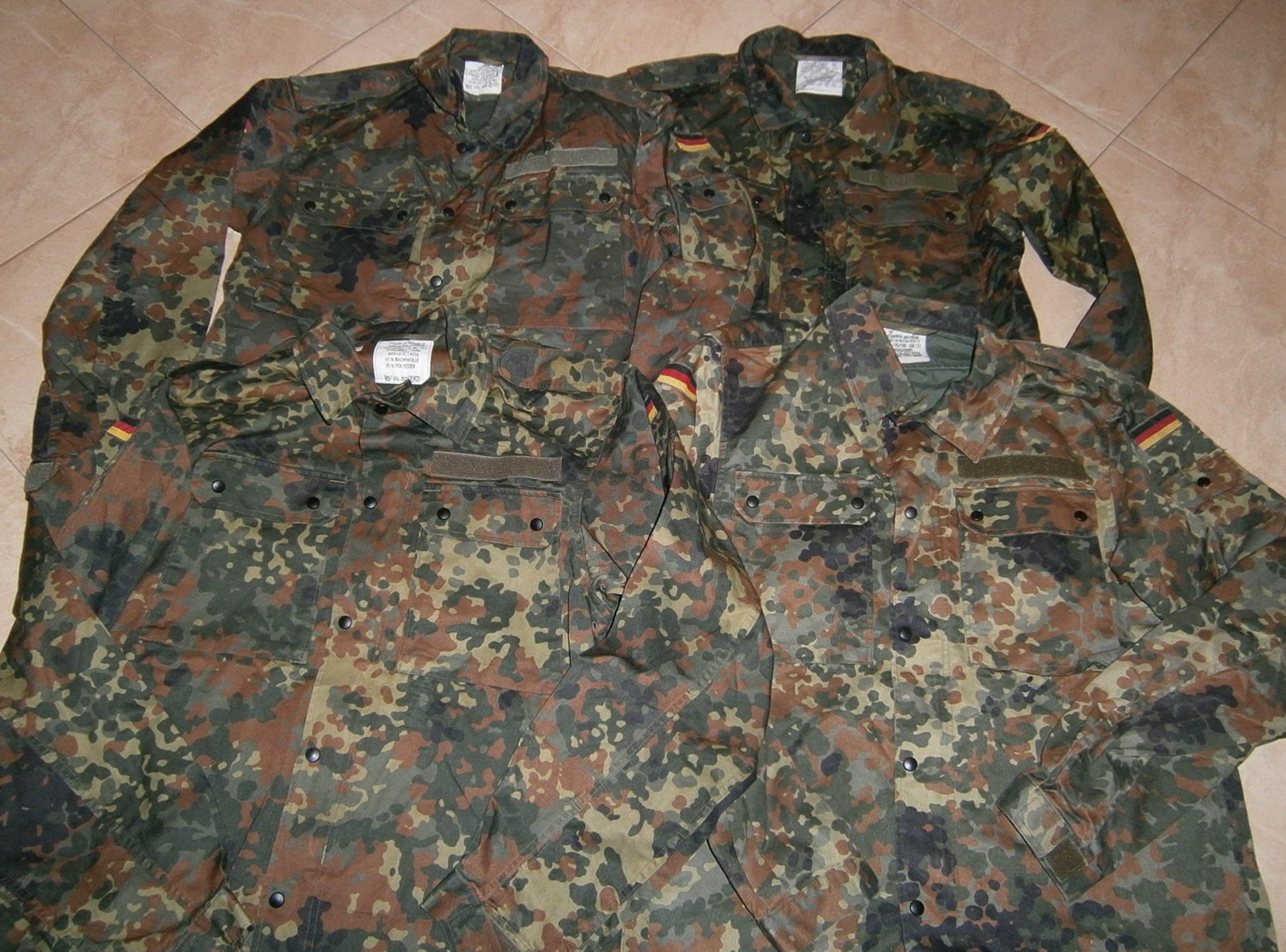 Рубашка Бундесвера. Расцветка - флектарн. Оригинал. Состав: 65% хлопок, 35% полиэстер. На рубахе два больших внешних кармана, а также карман на рукаве. Манжеты рукавов регулируются липучками.