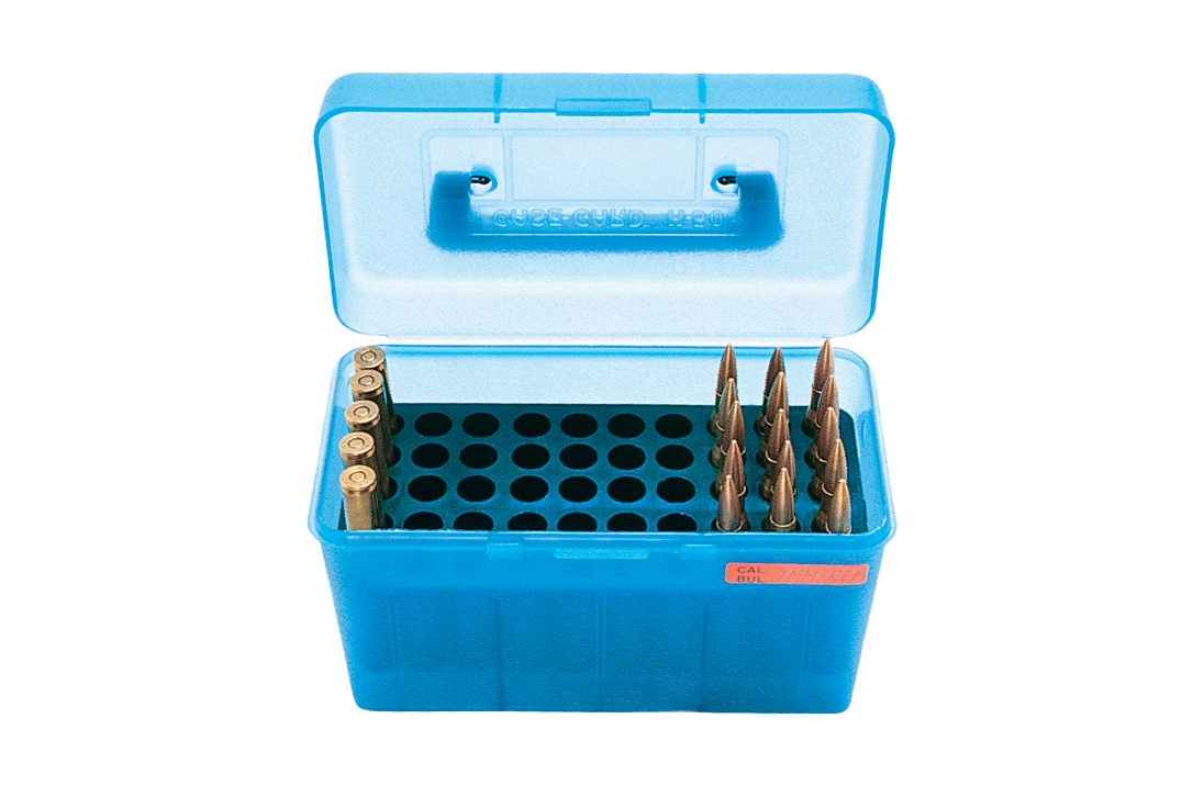 Есть коробка MTM 50 Round Deluxe Handled Ammo Box на 50 патронов следующих калибров: