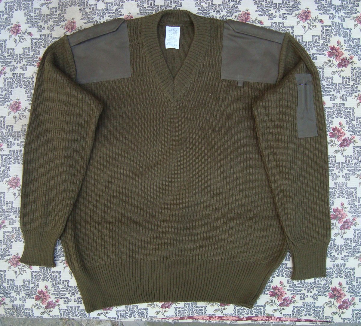 Свитер армии Италии. Цвет олива. Оригинал. Состав: 50% шерсть 50% акрил. Плечи и локти усилены дополнительными накладками. На рукаве предусмотрен карман для ручек