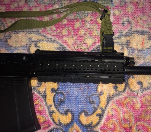 Заменено цевье на алюминиевый квадрейл. Родное цевье в комплекте.