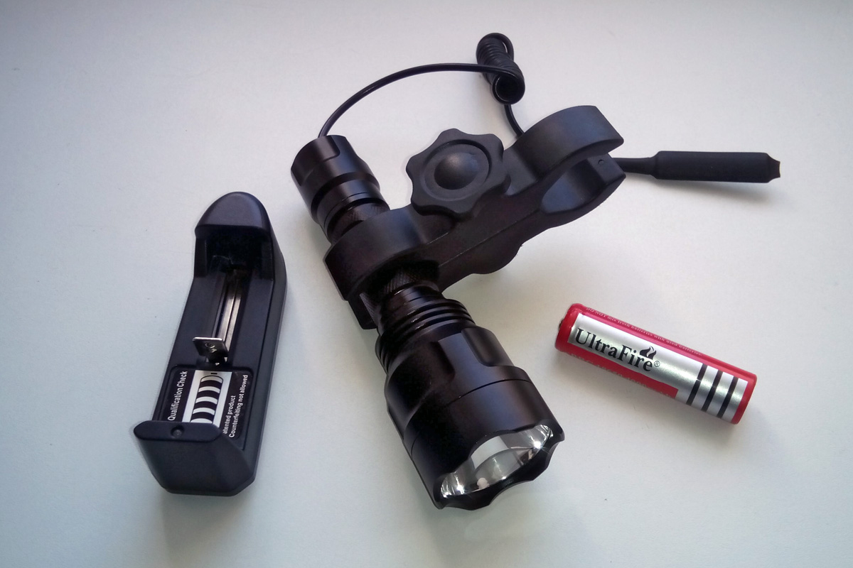 В комплекте кроме фонаря, выносная кнопка, крепление, а так же аккумулятор и зарядное устройство.