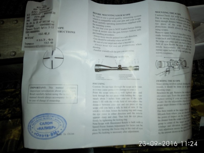 Re: Прицел Target Optic 3-12×40 AO (крест) с подсветкой с от