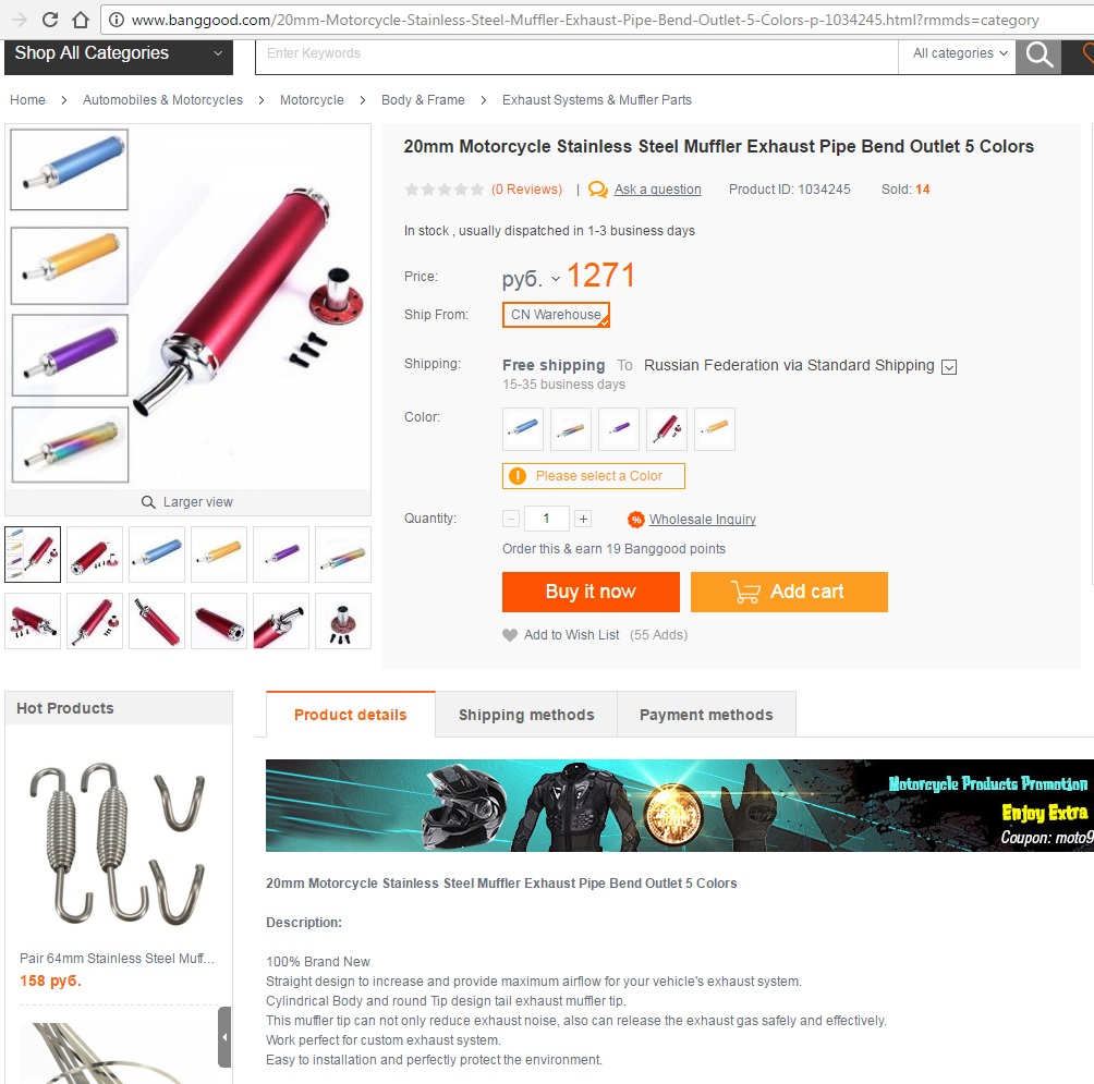 Тем, у кого нет возможности выполнить сварные работы ( как мне, например), китайцы предлагают большой выбор глушителей на моторы малой кубатуры. Слова для поиска - "ATV dirt bike"
