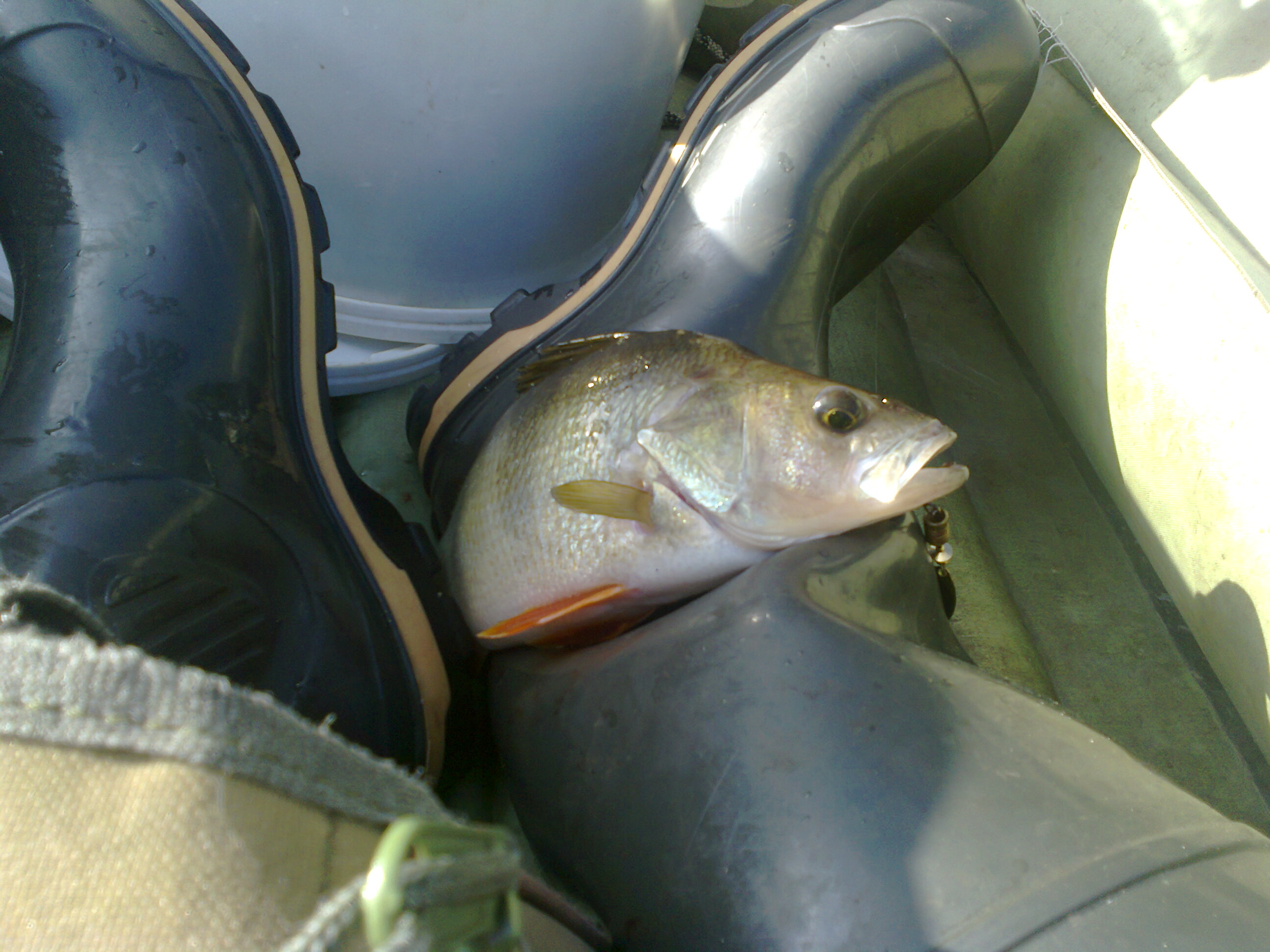 В самом начале этой вылазки, в районе деревни Семеновичи, со мной случилось происшествие из разряда «ужасы на рыбалке». Проводя через реку джиг-головку с резиной на крючке-десятке, я, чтобы не зацепить подтопленную прибрежную растительность, резко поддернул удилищем плеть, от чего джиг-головка выскочив из воды полетела мне прямо в лицо. Я среагировал, дернув головой в сторону, но недостаточно и крюк вонзился мне в щеку на уровне нижней челюсти. Сперва боли я не почувствовал, но попытка вынуть его вызвала ощутимую боль - качественная бородка сделала свое дело, мертво удерживая крюк в щеке. По началу я запаниковал и собрался ехать домой, чтобы в домашних условиях от него освободиться, но это означало бы испорченную рыбалку и не проведенную разведку новых мест. Успокоившись, я подумал, что смогу решить проблему в полевых условиях: все у меня для этого было, за исключением спирта или водки для дезинфекции. Вернувшись в машину, я уселся на переднее сидение, повернул к себе зеркало заднего вида так, чтобы хорошо видеть крюк, достал швейцарский мультитул с кусачками. Теперь надо было вывести из щеки наружу жало крючка с бородкой и не задеть при этом слюнную железу и лицевой нерв. Это оказалось не сложно, но болезненно. Труднее оказалось откусить кусачками жало с бородкой, но и с этим я справился за пару минут, а потом легко достал крюк из щеки. Дезинфицировать рану было нечем и я, понадеявшись на авось, промокнул кровь туалетной бумагой и пошел ловить дальше. Сейчас, когда пишу эти строки, пока все нормально – нагноения нет.